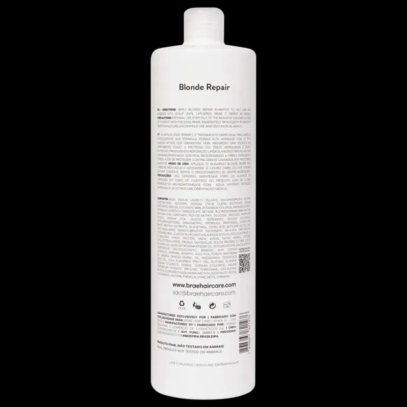 O Braé Blonde Repair Shampoo 1000ml foi desenvolvido especialmente para cabelos loiros e descoloridos, proporcionando limpeza suave e tratamento profundo para a fibra capilar.