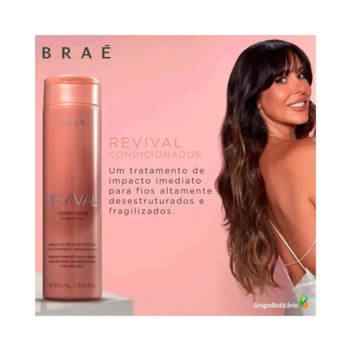 condicionador Braé Revival 250ml é um tratamento reparador indicado para cabelos danificados, quimicamente tratados ou fragilizados. Sua fórmula regeneradora desembaraça, hidrata e fortalece os fios, promovendo recuperação profunda e brilho saudável.