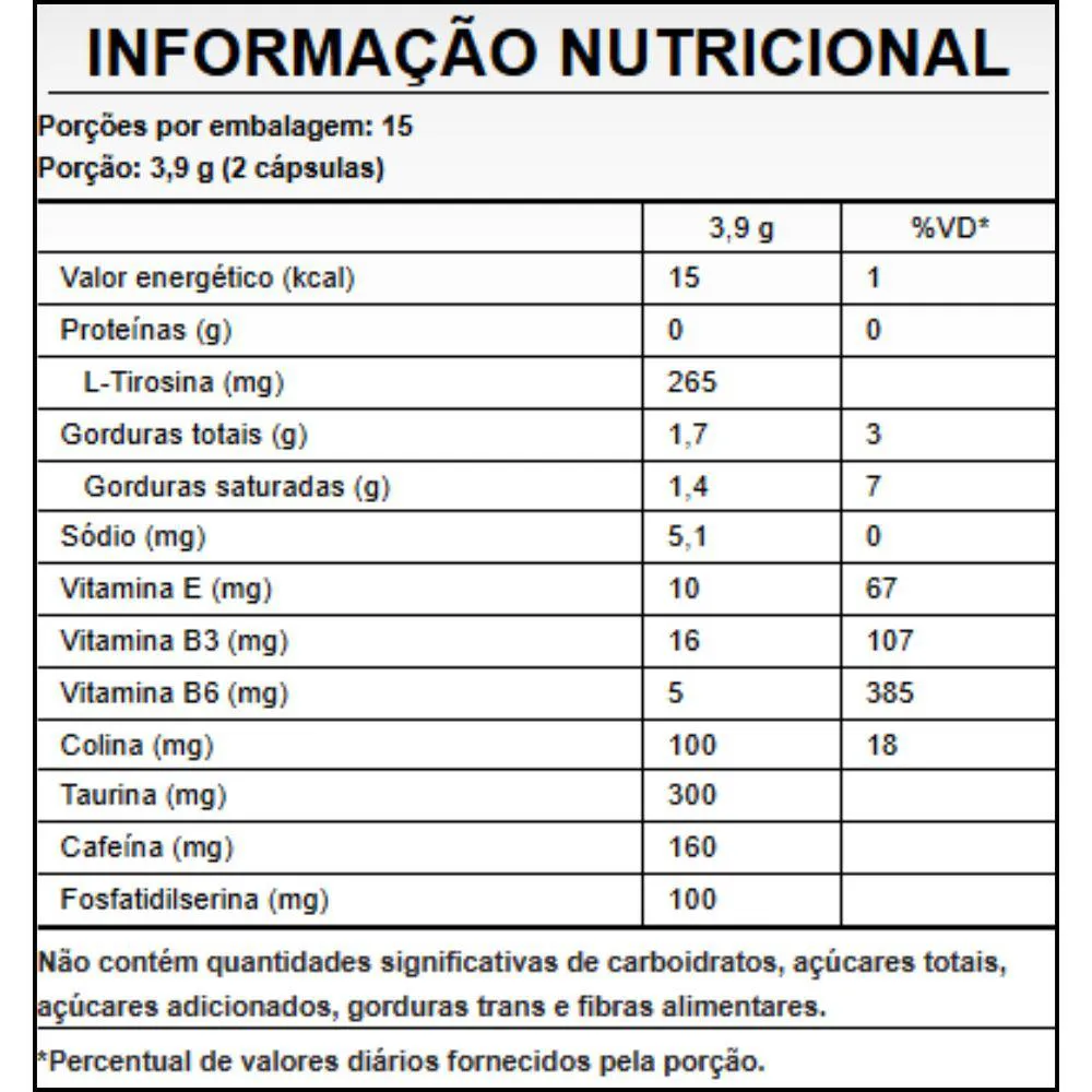 - Tirosina (265 mg): contribui para o foco, a motivação e o desempenho em situações desafiadoras.