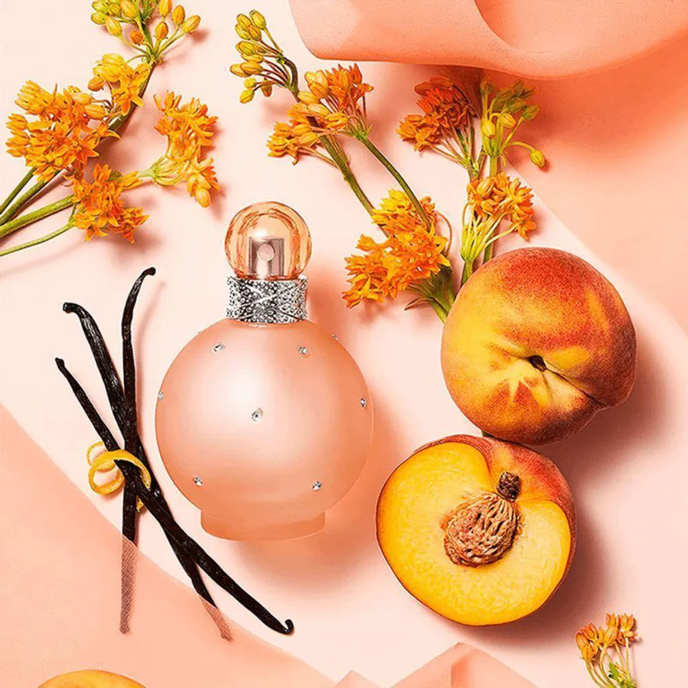 Abertura frutada e suculenta: Melancia, maçã vermelha e damasco criam um início fresco, doce e vibrante, evocando jovialidade e feminilidade.