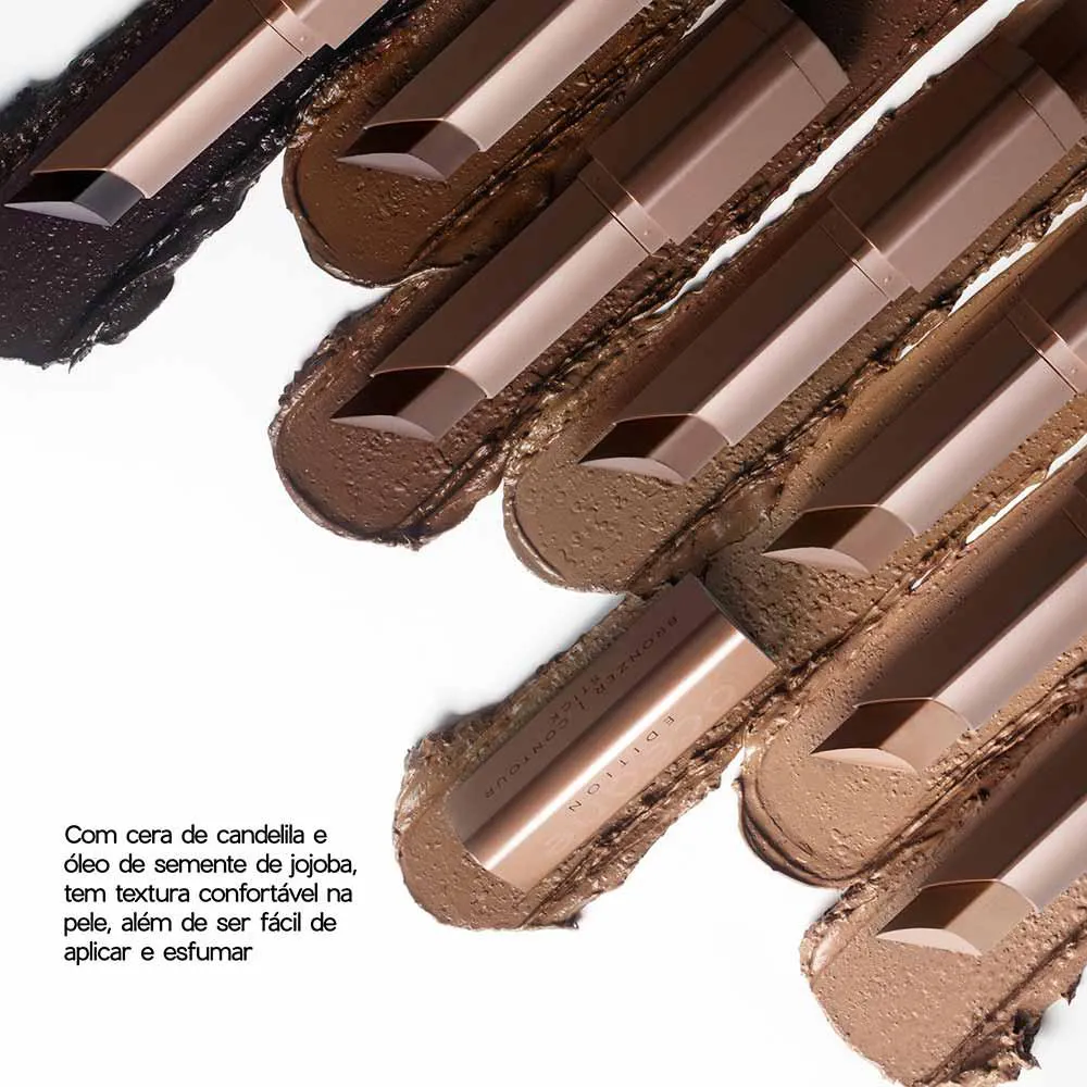 Com sua textura cremosa e acabamento matte, o Bronzer Contour Stick oferece pigmentação intensa e longa duração. Ideal para quem busca praticidade sem abrir mão de um visual sofisticado, ele se adapta a diferentes tons de pele por meio das suas sete tonalidades exclusivas.