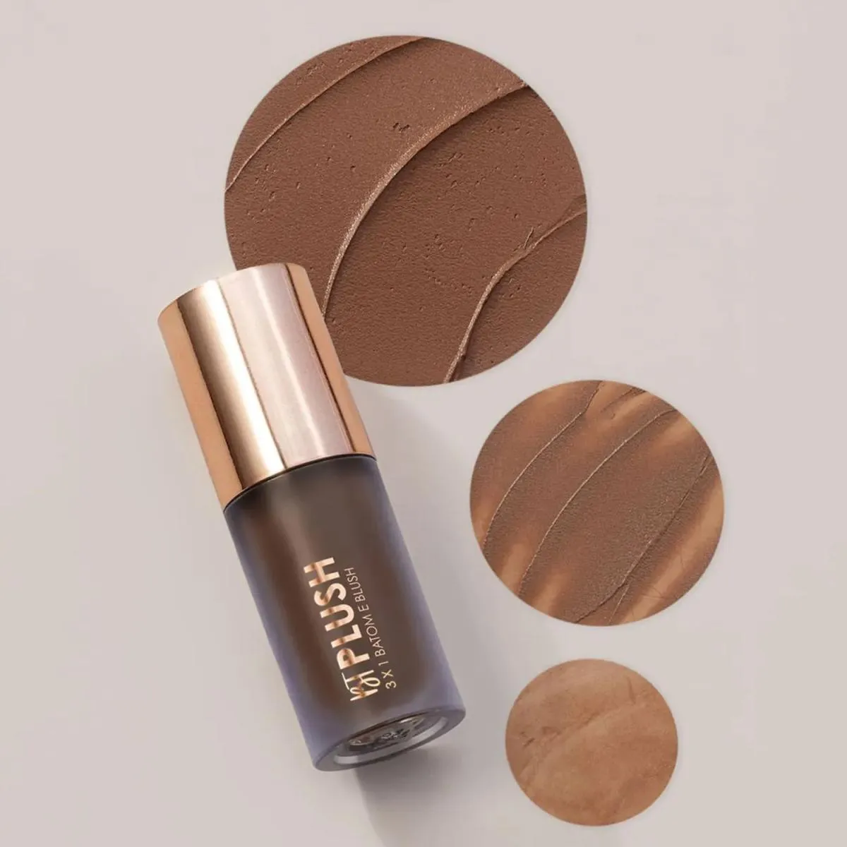 Produto multifuncional, que pode ser usado como blush, batom e sombra. Sua textura mousse cremosa e aveludada desliza facilmente sobre a pele, proporcionando acabamento semi matte suave com efeito blur.
