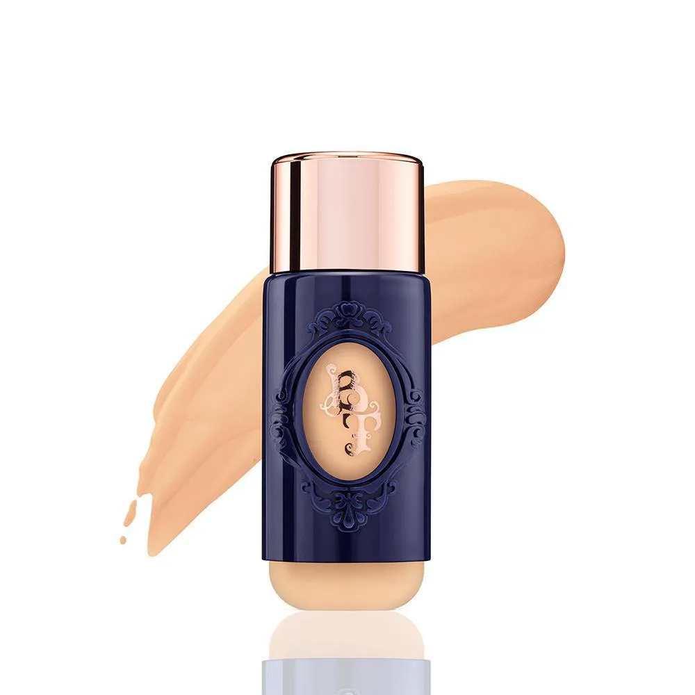 Base líquida ultra fluida, resistente à água, com textura leve e acabamento aveludado. Desenvolvida com alta concentração de pigmentos, proporciona uma pele uniforme, com efeito natural e ainda permite a construção de camadas. Com cobertura de leve a média, ela é livre de óleos, parabenos e combina alta performance com ativos de cuidados com a pele em um único produto.