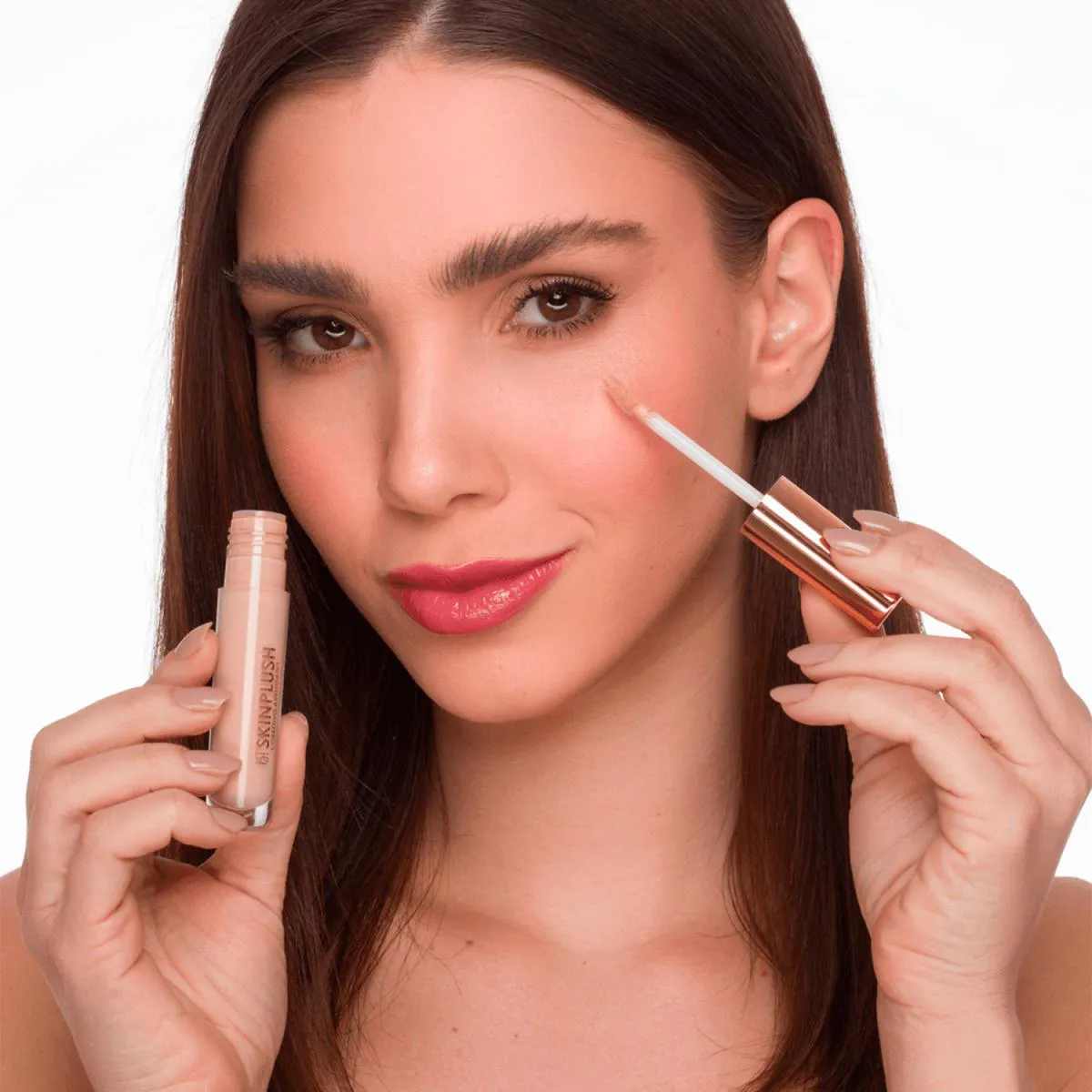 Um corretivo de textura soft mousse que oferece uma cobertura de leve a média e acabamento aveludado. Além de corrigir, iluminar e camuflar, o BT Skinplush conta com diversos ativos que ajudam a atenuar a aparência das olheiras e bolsas ao redor dos olhos. Ele também auxilia na hidratação e melhora da elasticidade da pele. Possui uma textura mousse, versátil e aveludada que garante maior conforto ao longo do uso. Ele é resistente à água, suor e oleosidade.