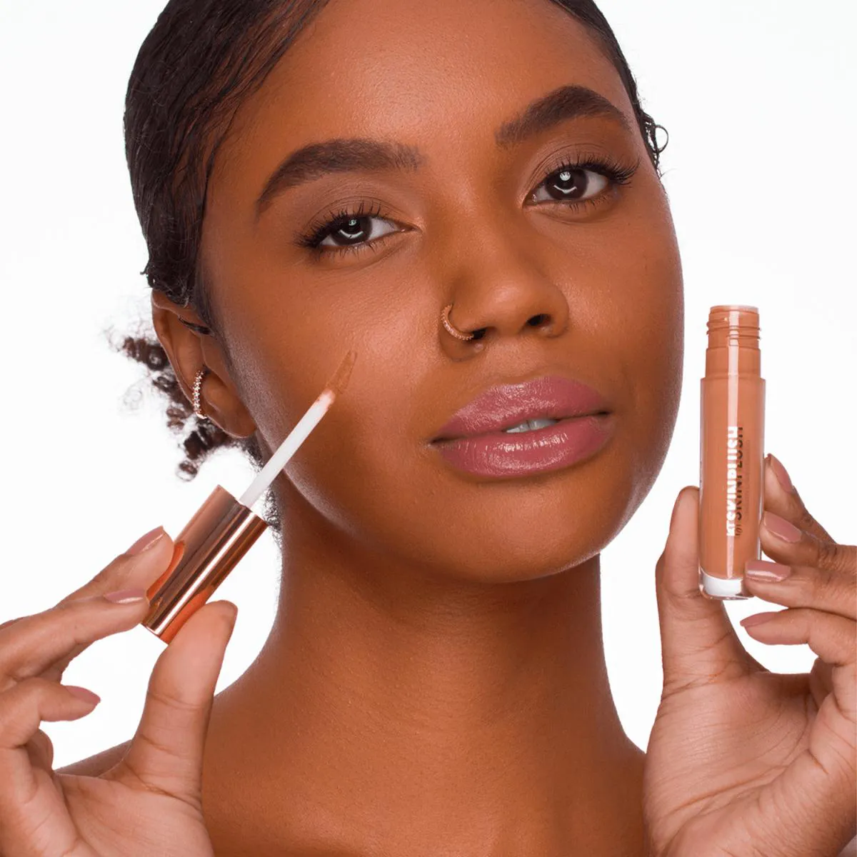 Um corretivo de textura soft mousse que oferece uma cobertura de leve a média e acabamento aveludado. Além de corrigir, iluminar e camuflar, o BT Skinplush conta com diversos ativos que ajudam a atenuar a aparência das olheiras e bolsas ao redor dos olhos. Ele também auxilia na hidratação e melhora da elasticidade da pele. Possui uma textura mousse, versátil e aveludada que garante maior conforto ao longo do uso. Ele é resistente à água, suor e oleosidade.