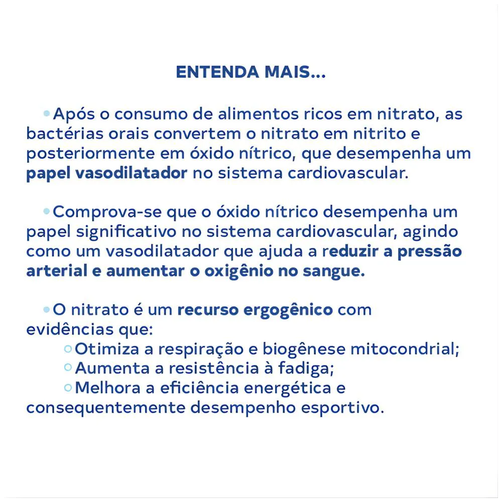 - Contém 400 mg de nitrato proveniente da beterraba por dose.