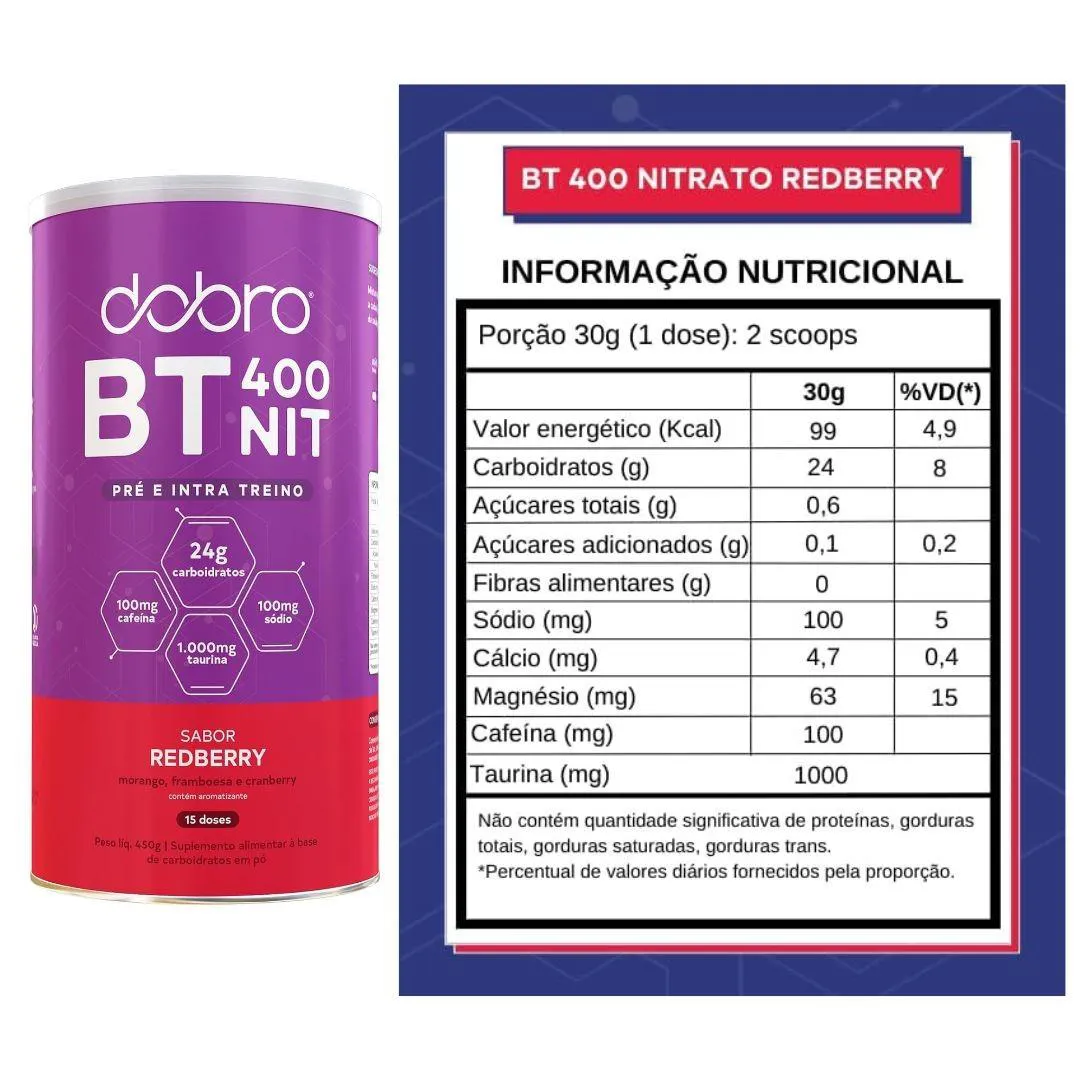 BT 400 Nitrato sabor Redberry – Pote com 450g | Energia, Vasodilatação e DesempenhoDescrição do Produto: