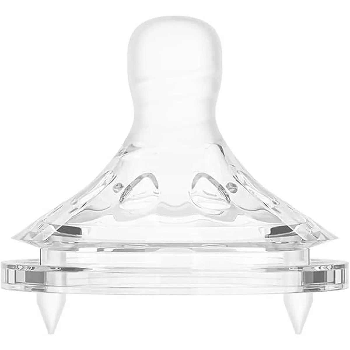 São bicos de mamadeira em silicone ultrasoft, desenvolvidos para bebês a partir de 6 meses, com fluxo 4 que permite alimentação de líquidos mais espessos. Servem para facilitar a alimentação do bebê, oferecendo um fluxo mais rápido e contínuo, com sistema anticólica que reduz a ingestão de ar, proporcionando uma alimentação mais confortável e segura durante a evolução nutricional da criança.