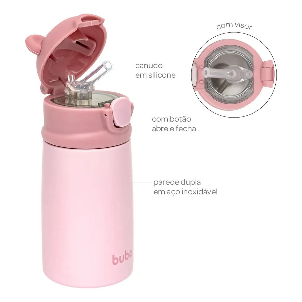 Buba Copo Térmico Parede Dupla Ursinho Rosa 320Ml (7908103780771)