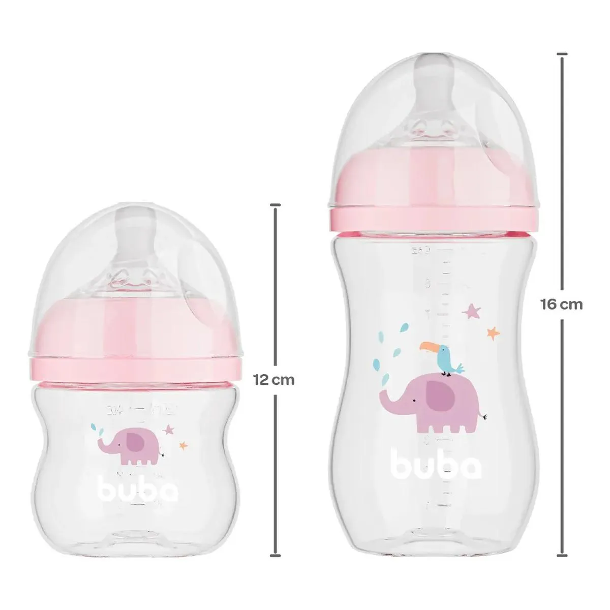 Buba Kit 2 Mamadeiras Easy Flow Elefante Rosa 120Ml e 270Ml (7908103809816)