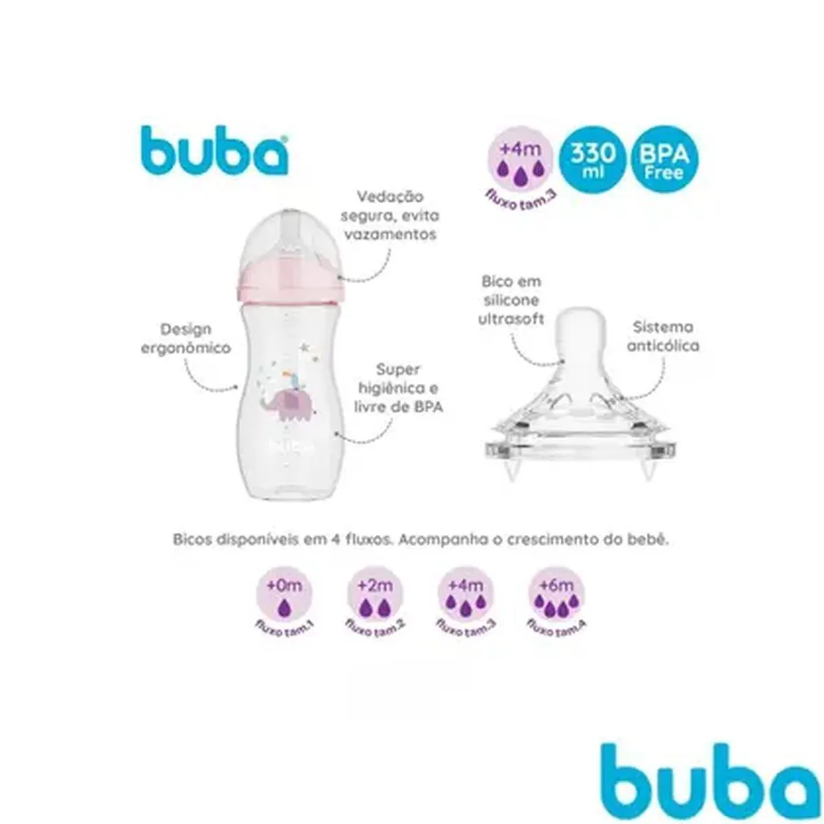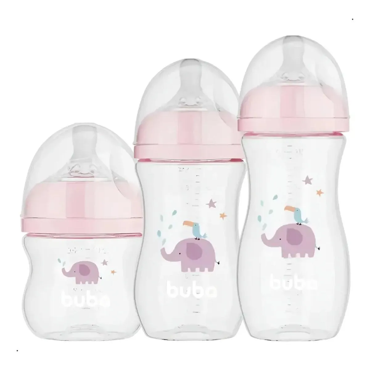 Buba Kit 3 Mamadeiras Easy Flow Elefante Rosa 120Ml, 270Ml e 330Ml (7908103809861)