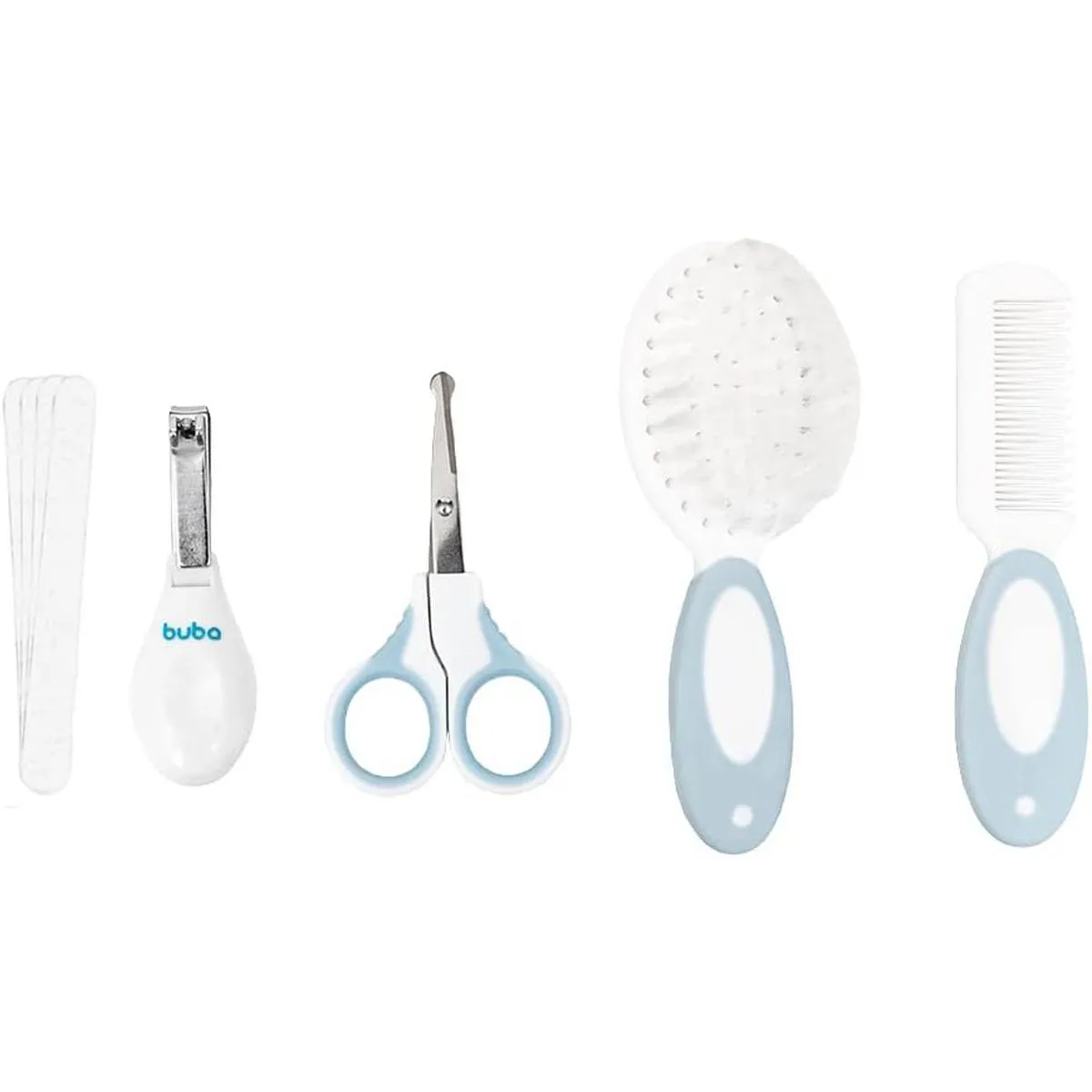O Kit Cuidados com Estojo Azul Buba é ideal para manter a higiene e o bem-estar do bebê em qualquer momento. Compacto e completo, reúne acessórios essenciais para o cuidado diário, garantindo praticidade e segurança aos pais. Características:- Contém tesourinha com pontas arredondadas, cortador de unhas, lixa, escova e pente