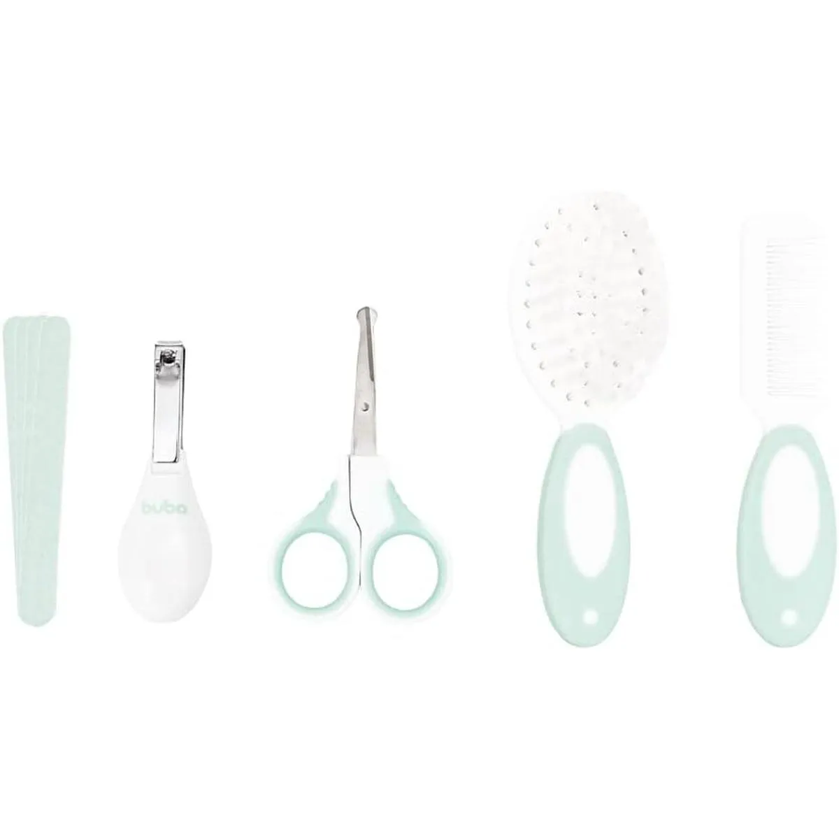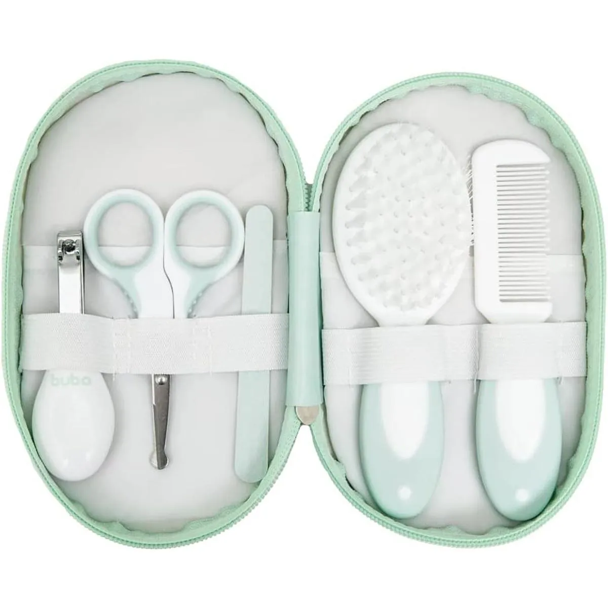 O Kit Cuidados com Estojo Verde Buba é perfeito para manter a higiene e o bem-estar do bebê em qualquer lugar. Reúne os principais acessórios de cuidado pessoal em um estojo prático, ideal para uso diário, passeios ou viagens. Características:- Contém tesourinha com pontas arredondadas, cortador de unhas, lixa, escova e pente
