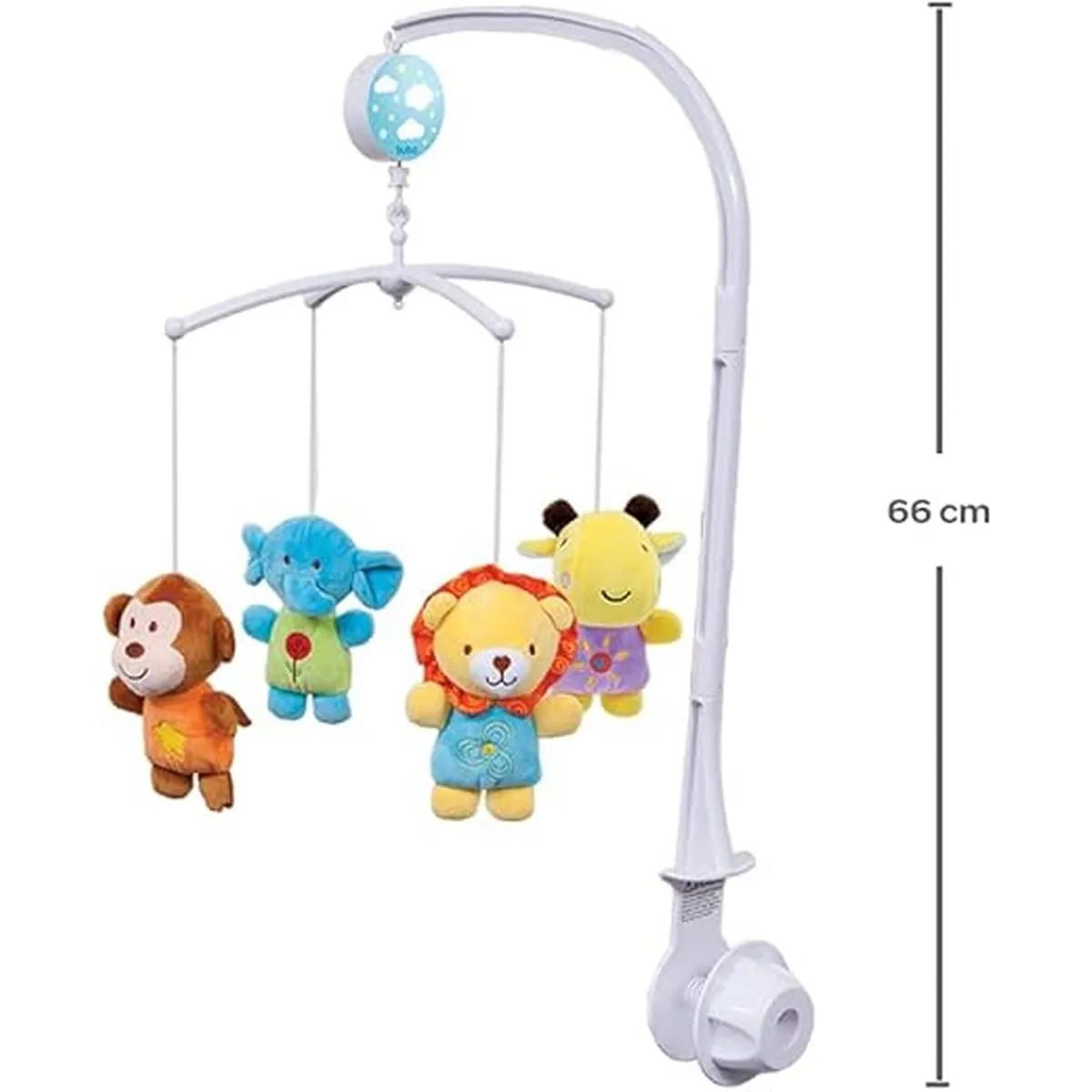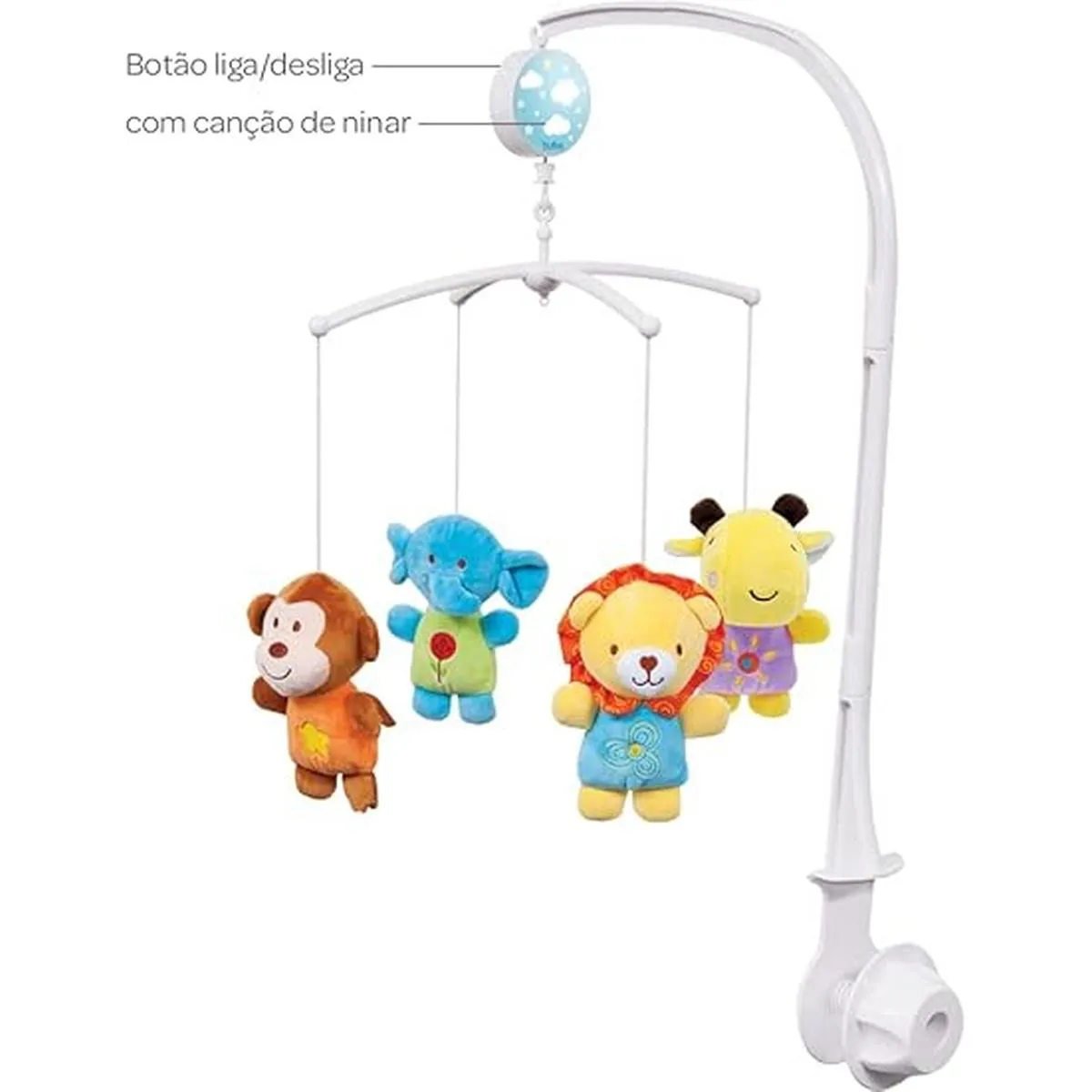 O Móbile Musical Safári da Buba traz um toque de diversão e aconchego ao berço do bebê. Com animaizinhos do safári e músicas suaves, estimula os sentidos e auxilia no desenvolvimento visual e auditivo. Características:- Toca músicas calmas para relaxar o bebê