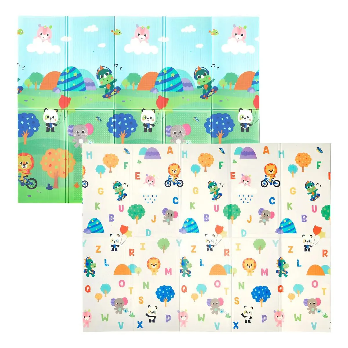 - Dupla face com ilustrações educativas e divertidas.
