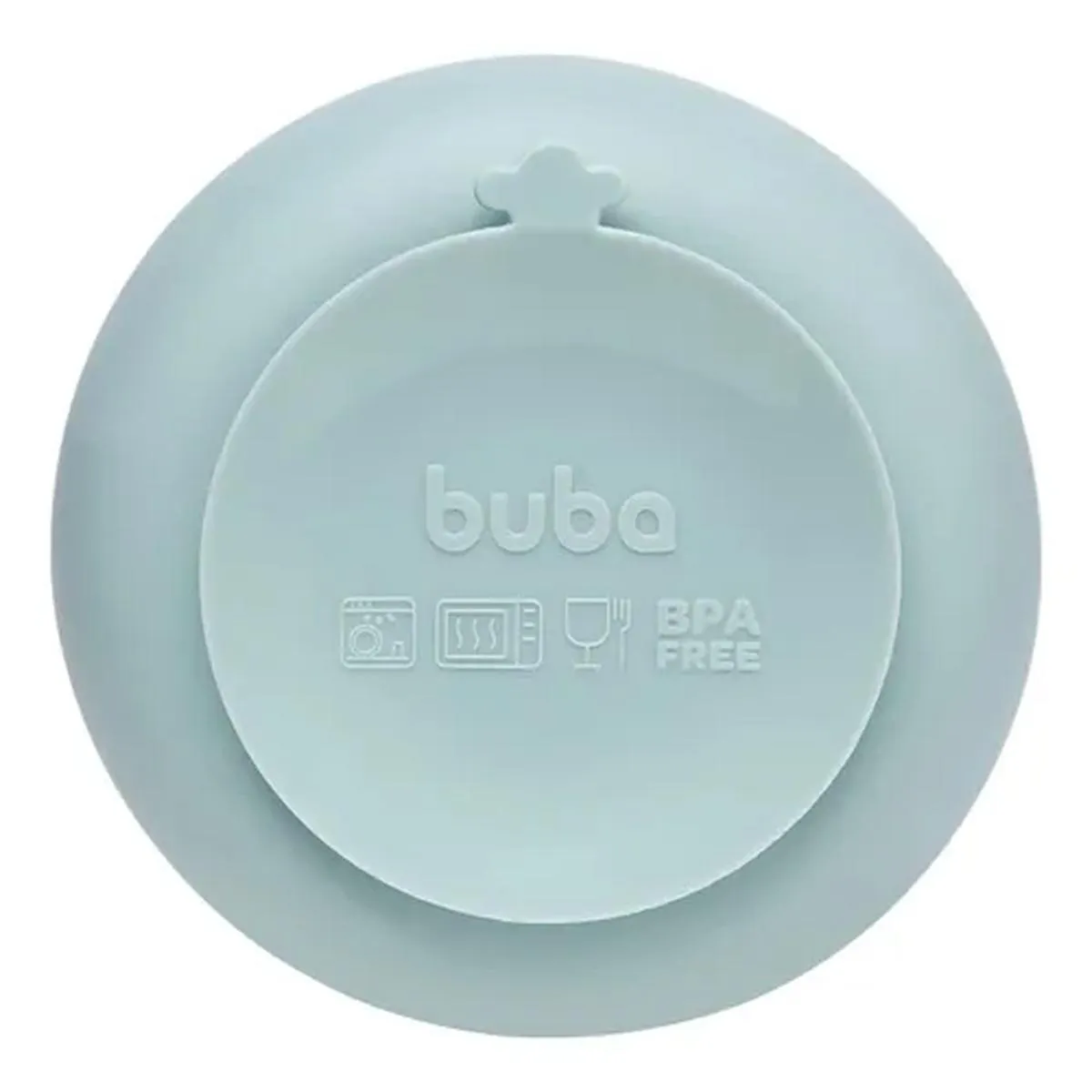 Posicione a tigela sobre uma superfície plana e pressione a ventosa para fixar. Coloque os alimentos e permita que a criança se alimente com segurança. Cuidados: