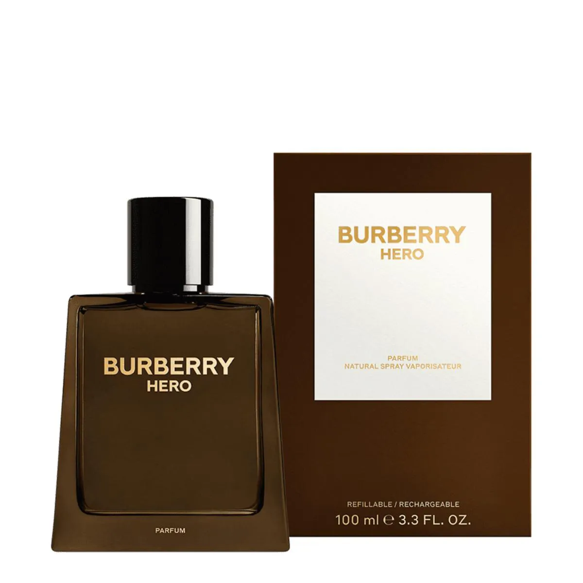 A apresentação do Burberry Hero é marcante e elegante, refletindo a sofisticação da marca. O frasco é robusto e angular, transmitindo uma sensação de força e confiança. O design é minimalista e refinado, com detalhes que remetem à herança britânica da Burberry.