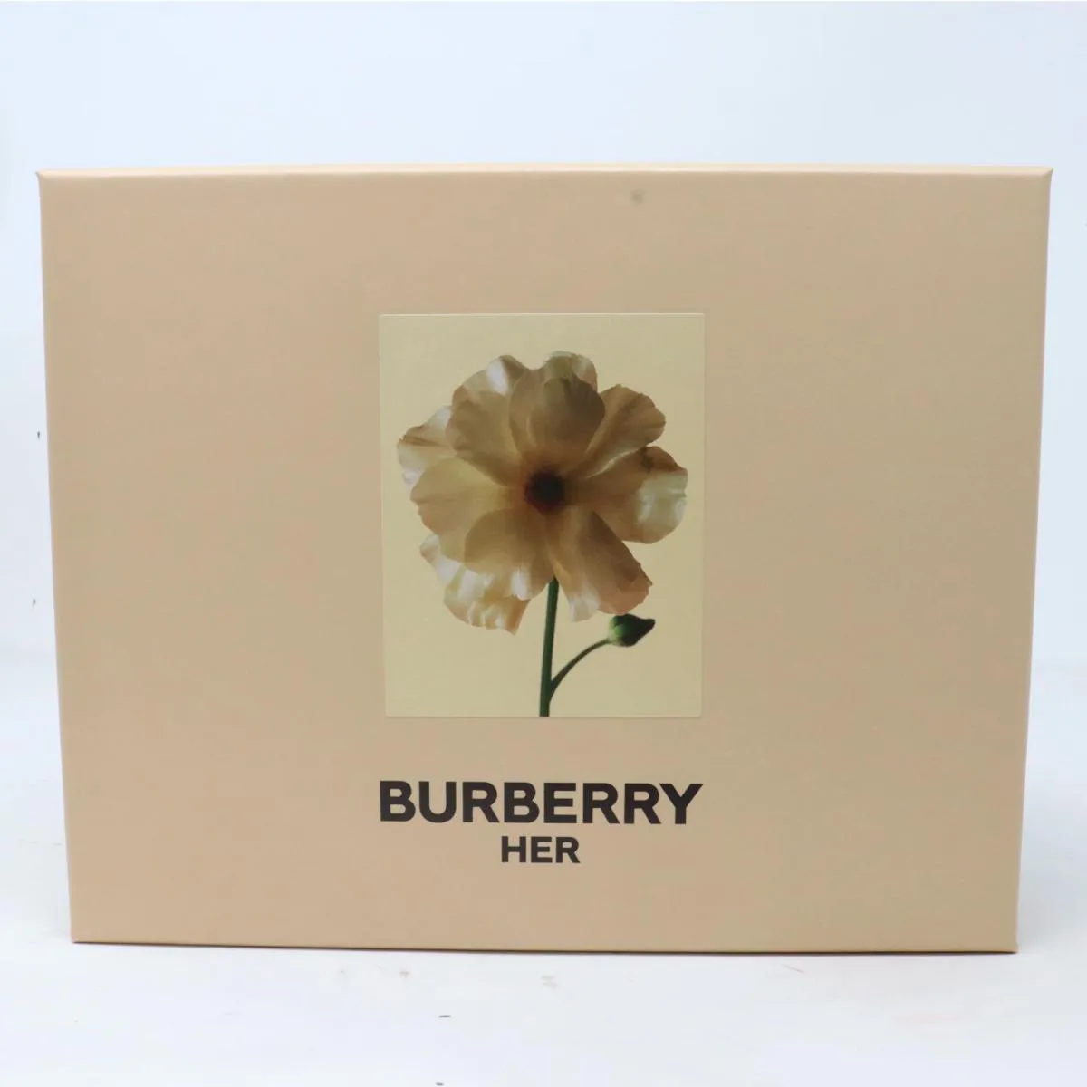 O Burberry Kit Her vem em uma embalagem elegante e sofisticada, ideal para presentear ou para uso próprio. O design dos frascos de perfume e da embalagem da loção corporal refletem a qualidade e a atenção aos detalhes características da marca Burberry.