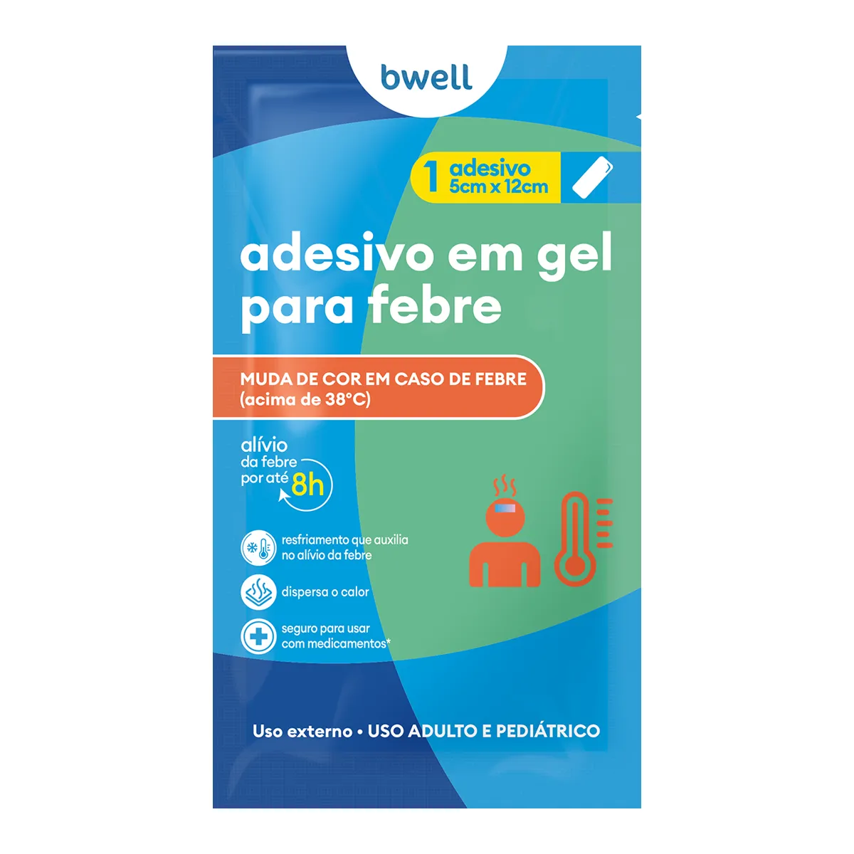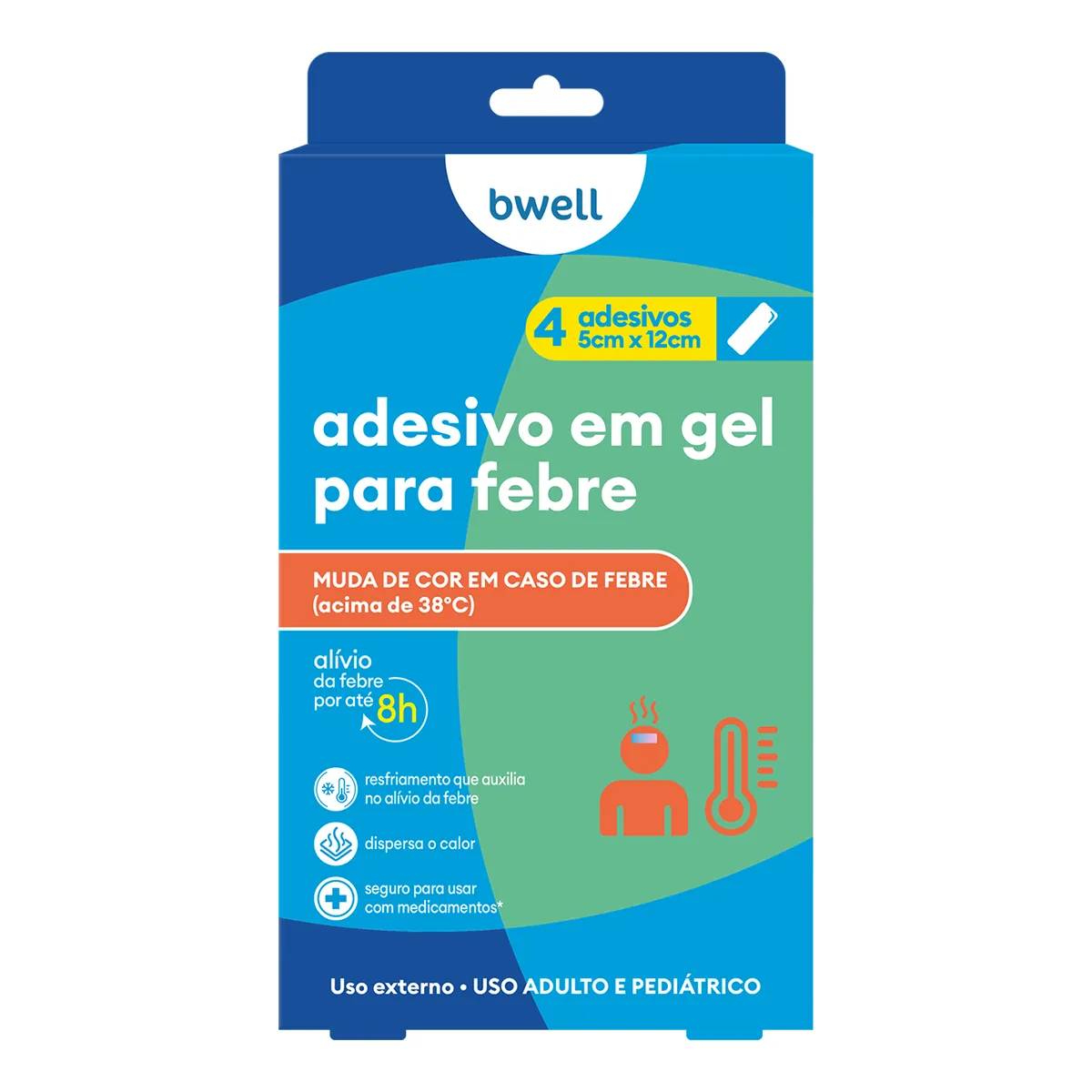 O Adesivo Gel para Alívio da Febre Bwell é um produto desenvolvido para auxiliar no resfriamento e alívio da febre, ajudando a dispersar o calor corporal. Termossensível, ele muda de cor quando a temperatura está acima de 38°C, oferecendo uma solução prática e confortável para momentos de febre.