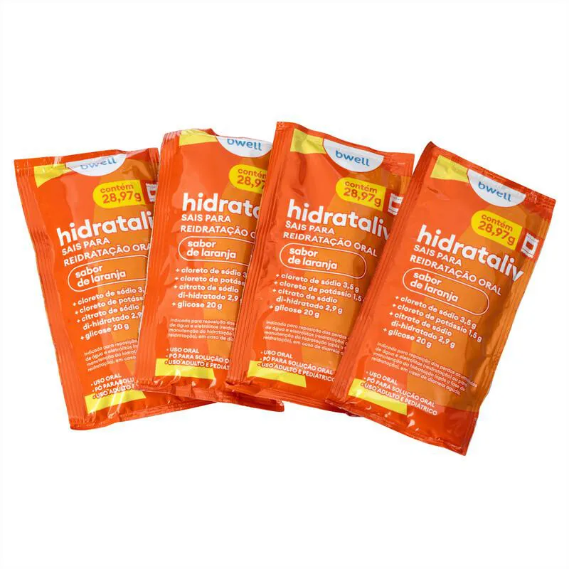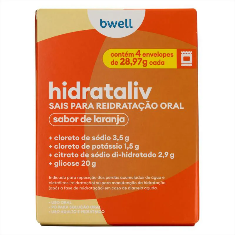 Sais para Reidratação bwell Hidrataliv Laranja 4 envelopes