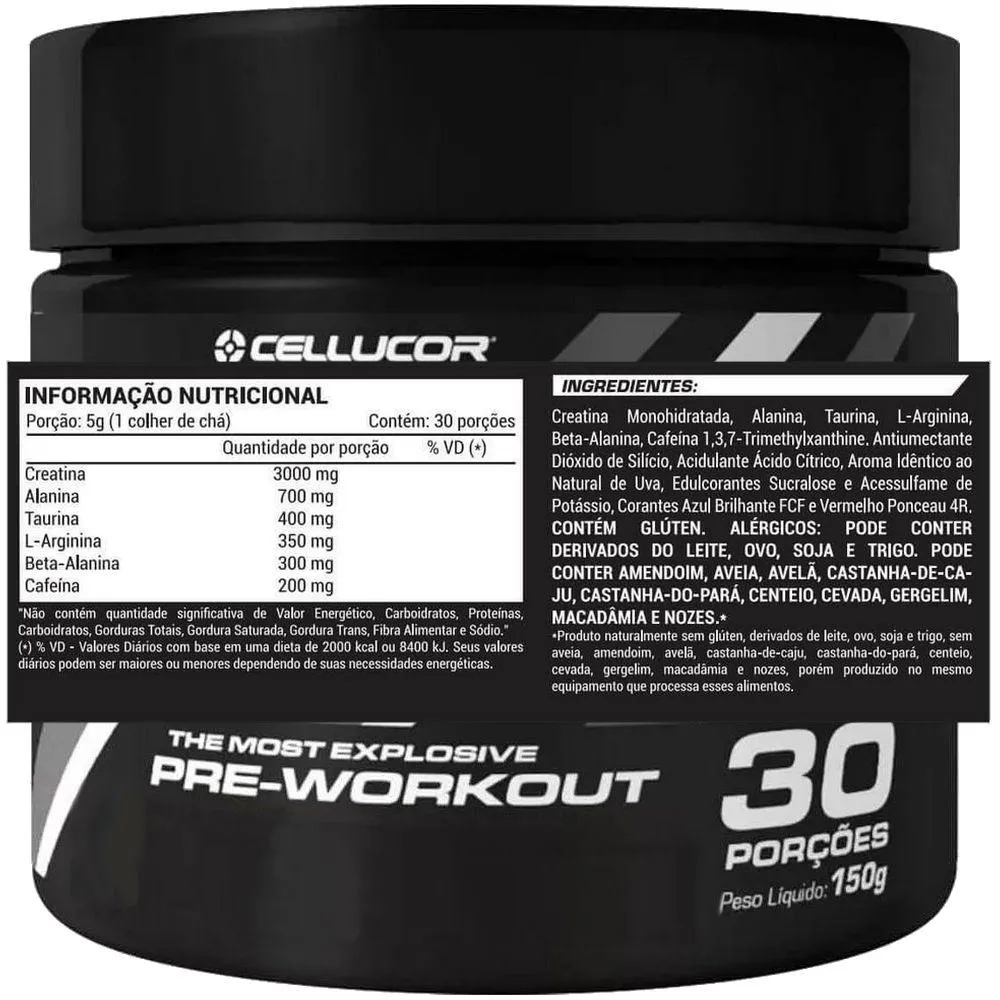 Tangerina: creatina monohidratada, Maltodextrina, Taurina, Alanina, L-Arginina, Cafeína 1,3,7-trimethylxanthine, Antiumectante dióxido de silício, Acidulante ácido cítrico, Aroma idêntico ao natural de tangerina, Edulcorante sucralose. Corantes: Vermelho 40 e Amarelo Crepúsculo.