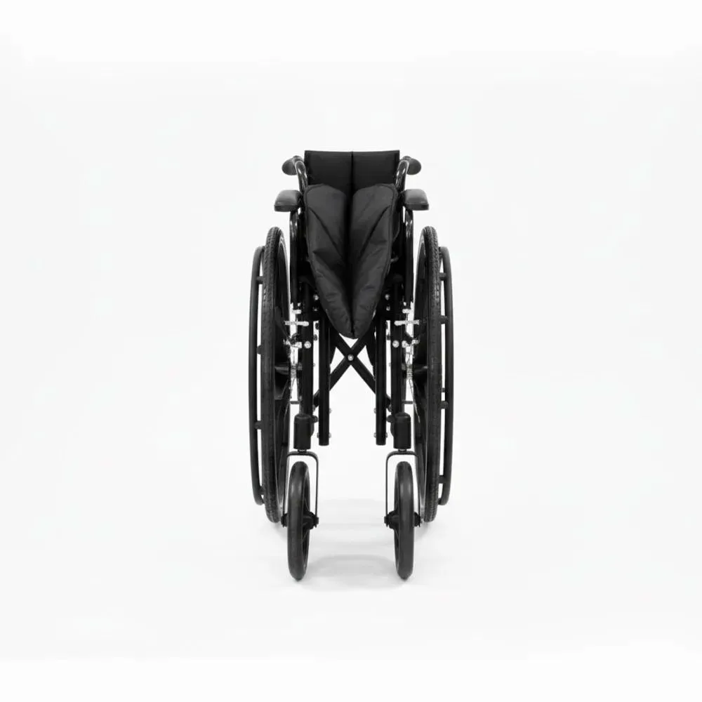 Medidas funcionais garantem conforto no uso: assento 45 × 44,5 cm e largura interna 45 cm, com freio bilateral e faixa de panturrilha.