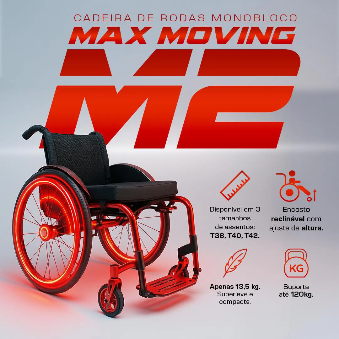 A cadeira de Rodas Monobloco M2 Max Moving Dellamed foi projetada para oferecer mobilidade, conforto e independência com design moderno, estrutura em alumínio e ajustes personalizados para o dia a dia.