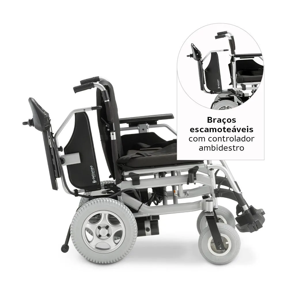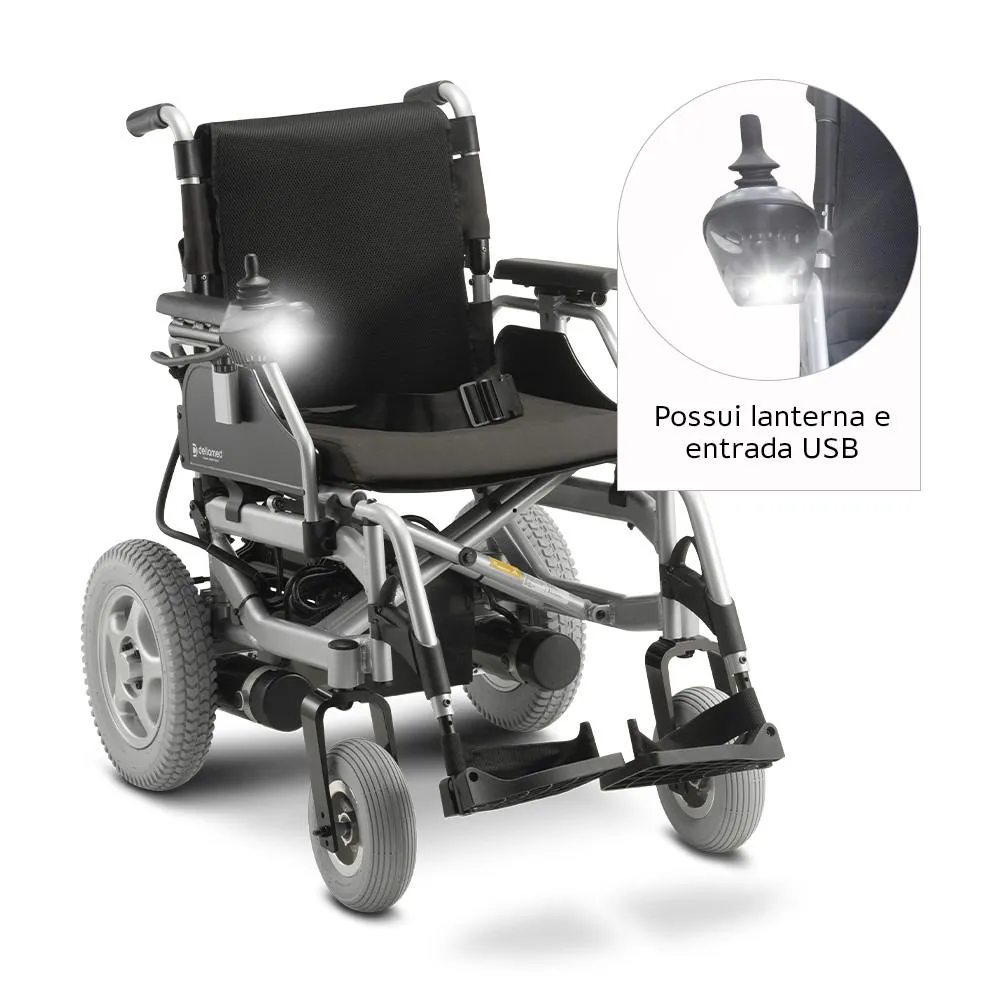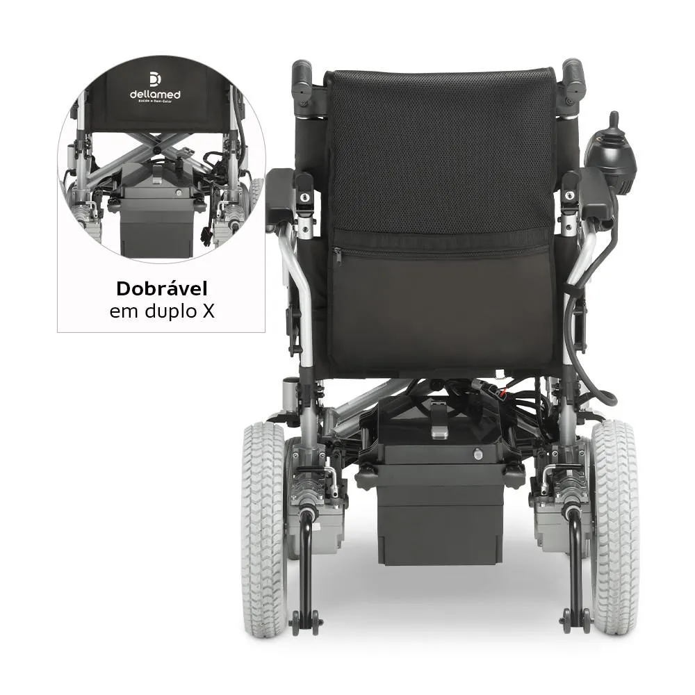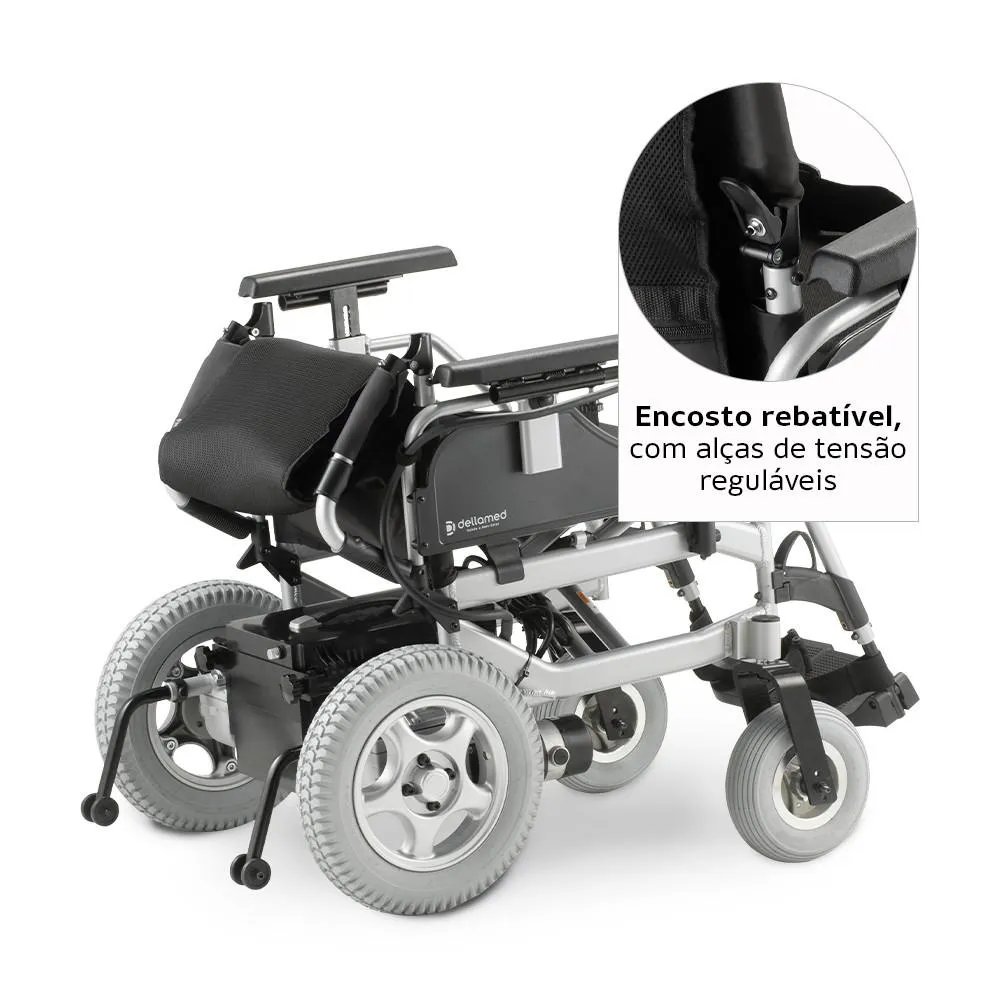 Cadeira de Rodas Motorizada em Alumínio Dobrável Até 120 Kg Assento de 45 Cm D1000 Dellamed Prata