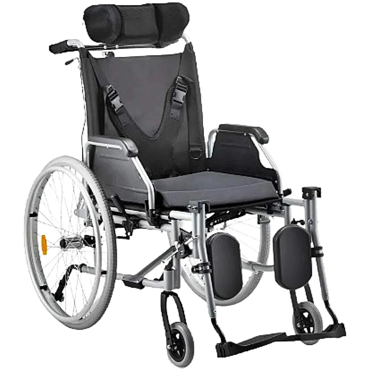- Cinto torácico e apoio de cabeça regulável.