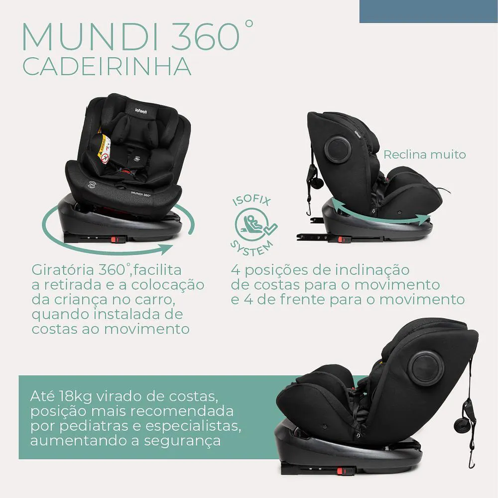 Cadeirinha de Carro Mundi Isofix 360º Preto - Infanti
