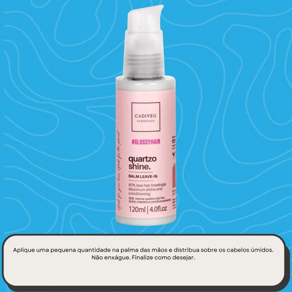 Cadiveu Boca Rosa Hair Balm Leave-in 120mlLeave-in Cadiveu Professional Boca Rosa Hair Quartzo Shine Balm traz uma fórmula super leve que não pesa no cabelo. Com ingredientes especiais, reduz pontas duplas, sela as cutículas, repara a fibra capilar e confere muita maciez e brilho intenso. Além disso, o uso contínuo proporciona 60% menos quebra dos fios. É ideal para garantir uma finalização perfeita.