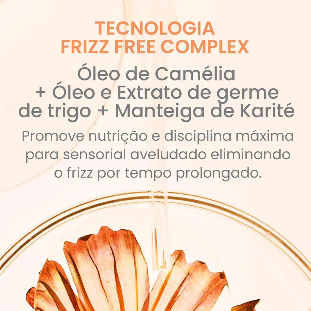 Elaborado com Óleo de Camélia, rico em ômegas 3, 6 e 9, cria o efeito de cabelo perfeito, sem frizz e brilhante.