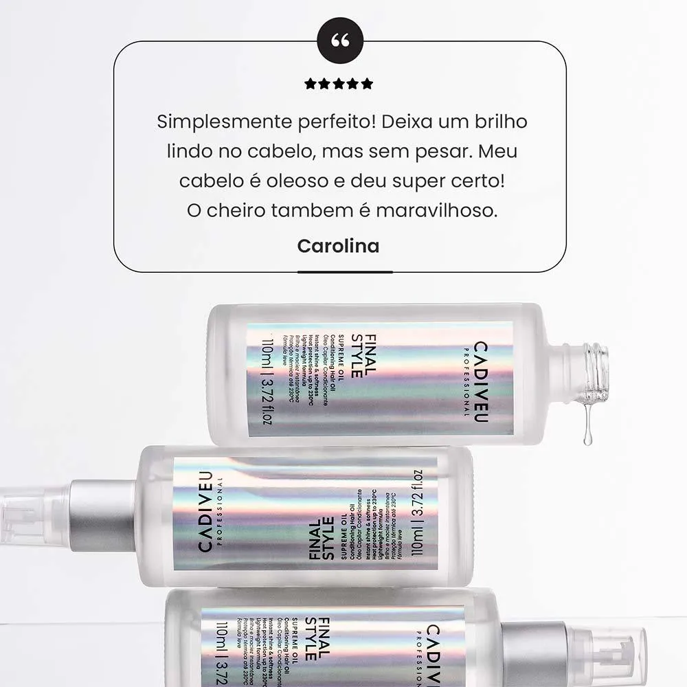 O Cadiveu Professional Final Style Óleo de Tratamento Supreme Oil Condicionante é um tratamento capilar multifuncional desenvolvido especialmente para proporcionar cuidados completos a todos os tipos de cabelo.