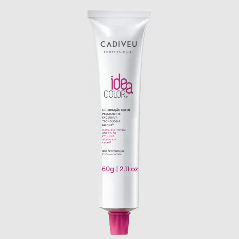 coloração permanente. Cadiveu Idea Color proporciona cobertura completa dos cabelos brancos, com cor vibrante, resistente ao desbotamento e durabilidade prolongada.A Coloração Permanente Cadiveu Idea Color possui uma fórmula com baixa concentração de amônia, além de tecnologia Iriscell, 18MEA + Manteiga de Murumuru, que garantem alto poder de nutrição aos fios. Garante resultados fiéis a cartela de cores, promovendo também um brilho e contraste impecáveis.