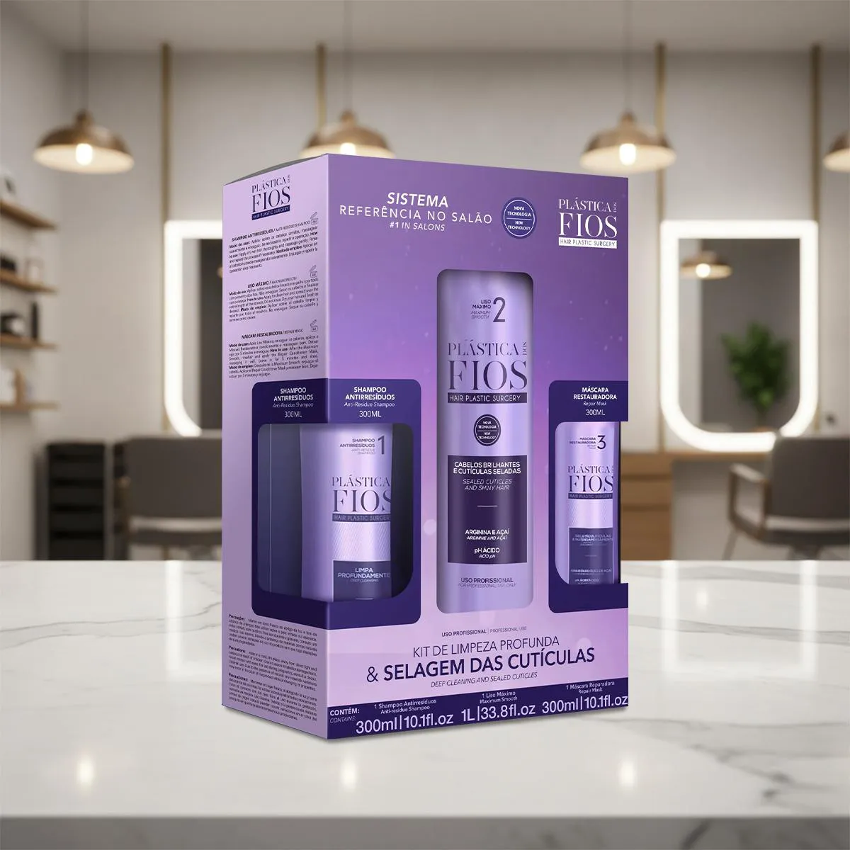 Este Kit Contém Cadiveu Professional Plástica dos Fios - shampoo Antirresíduos 300ml: limpeza profunda que elimina impurezas e resíduos acumulados, preparando a fibra capilar para o tratamento selante. Deixa os fios purificados, leves e prontos para absorver os ativos reconstrutores. Cadiveu Professional Plástica dos Fios - Ativo Liso Máximo 1L: realinha a estrutura capilar e sela as cutículas, proporcionando liso intenso, brilho radiante e toque sedoso. Controla o frizz e garante disciplina máxima por até 3 meses. Cadiveu Professional Plástica dos Fios - máscara Restauradora 300ml: nutre profundamente e repõe a hidratação essencial, devolvendo a maciez e a elasticidade natural dos fios. Mantém o cabelo disciplinado, flexível e com brilho saudável.Conselho de Aplicação