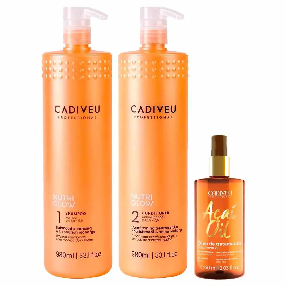 Cadiveu Professional Nutri Glow Kit – Shampoo + Condicionador + Açaí Oil Tratamento Reconstrutor
