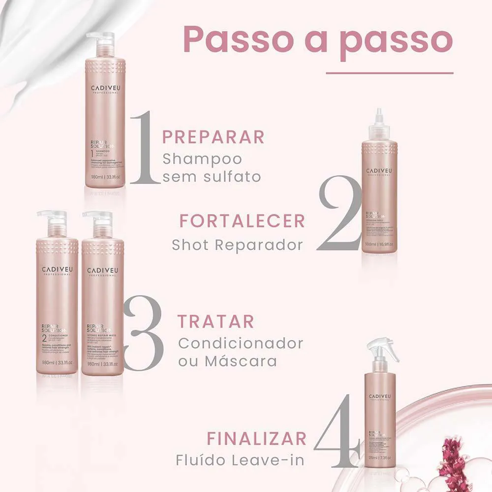 Cadiveu Professional Repair Solution oferece uma solução profissional instantânea para cabelos danificados por processos mecânicos, térmicos ou químicos.
