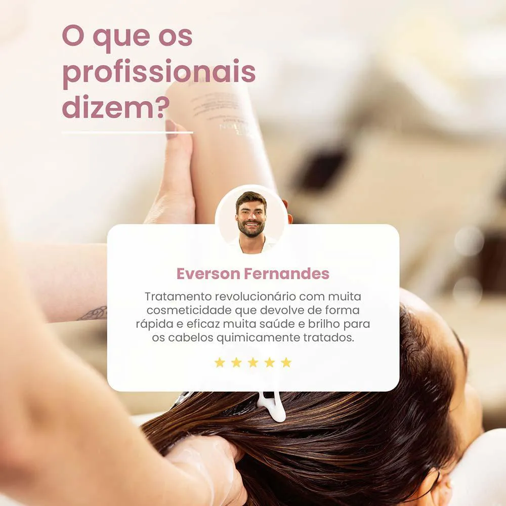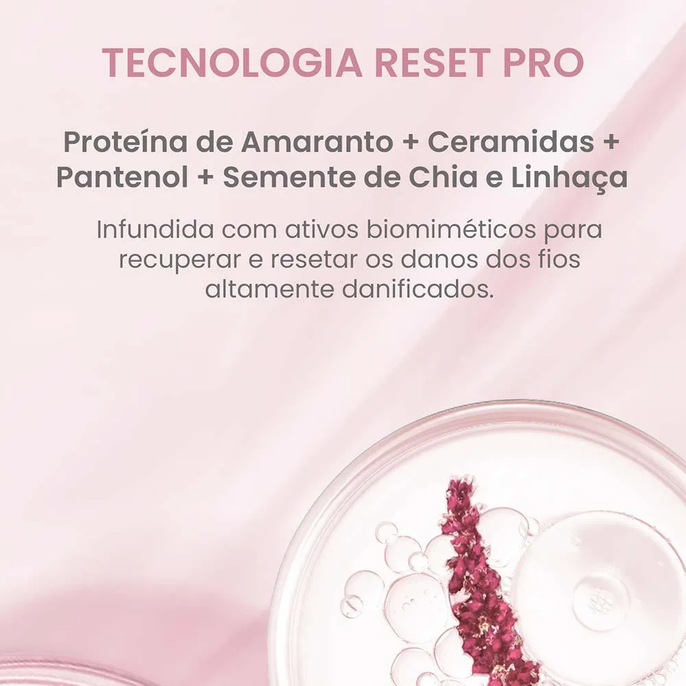 Um tratamento completo capaz de restaurar a hidratação, nutrição e reconstrução dos fios para RESETAR os danos e recuperar a saúde dos fios altamente danificados. Sua formulação garante 95% de reparação instantânea, 90% menos quebra e reversão dos danos em 10 minutos.