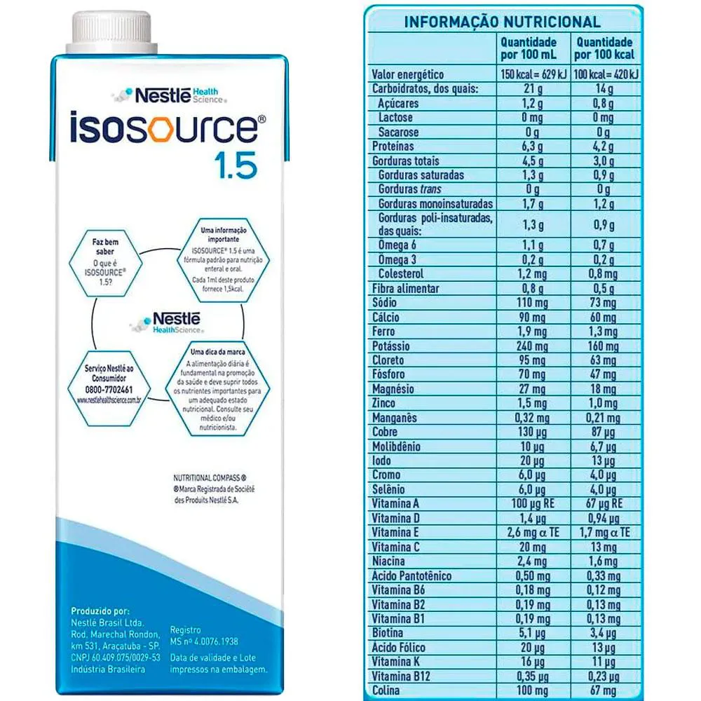 O Isosource 1.5 é uma fórmula completa com todos os nutrientes necessários para utilização por sonda ou via oral, hiperproteico e hipercalórico. Ótima opção para o cuidado domiciliar. Pronto para o uso, o produto oferece segurança, praticidade e menor risco de contaminação.