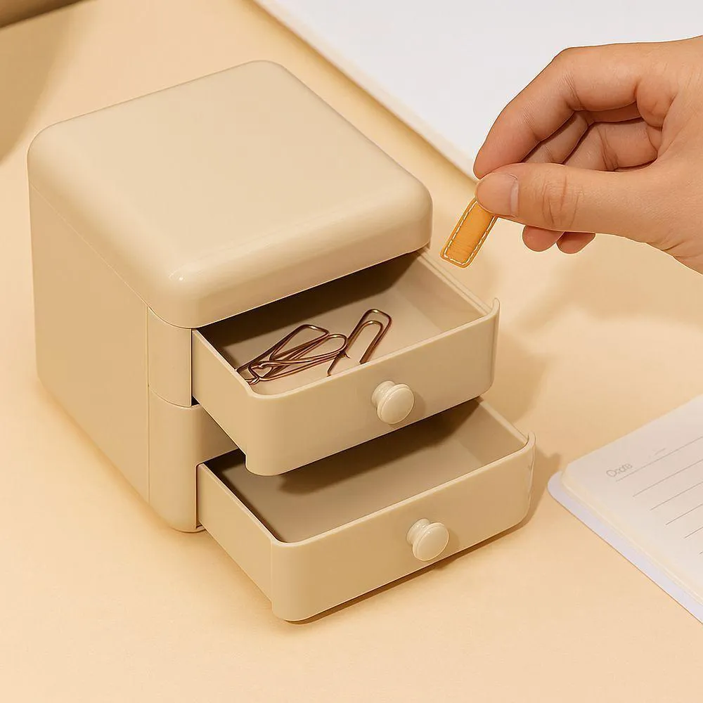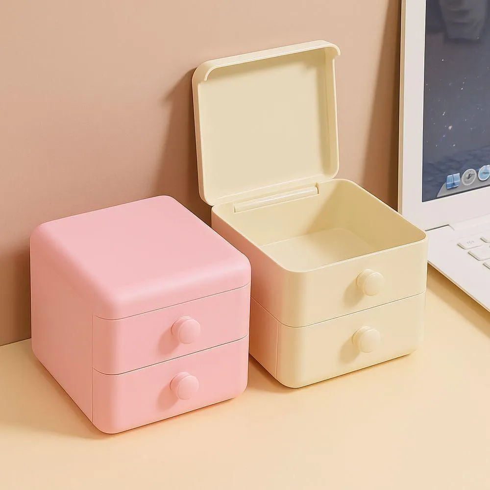 Caixa Organizadora com Gavetas e Tampa – Ideal para Maquiagem, Escritório e AcessóriosPessoas que buscam organização com estilo: estudantes, profissionais em home office, amantes de papelaria, quem tem penteadeira ou quer manter pequenos itens bem armazenados.Organiza objetos pequenos com eficiência e mantém tudo limpo, protegido contra poeira e sempre acessível, com visual moderno e delicado.Benefícios do Produto:Organiza maquiagens, bijuterias, cabos, acessórios e itens de papelariaProtege os objetos da poeira com a tampa superior articuladaDesign multifuncional que pode ser usado em vários cômodosGavetas com deslizamento suave e sem travamentosVisual decorativo com cores suaves que harmoniza com qualquer ambienteFicha Técnica:Modelo: Caixa Organizadora MultifuncionalMaterial: Plástico resistente de alta qualidadeCor: Tons pastel (rosa, verde, azul – consultar disponibilidade)Medidas aproximadas: 26 cm (largura) x 19 cm (altura) x 17 cm (profundidade)Compartimentos: 2 gavetas + 1 compartimento superior com tampa articuladaTipo de abertura: Gavetas deslizantes + tampa superior articuladaPeso aproximado: 800gHigienização: Pano úmidoUso indicado: Organização doméstica e profissionalFinalidade: Armazenar objetos pequenos, maquiagem, bijuterias, itens de escritório, cabos, eletrônicos e maisEstá cansado da desordem na sua mesa, penteadeira ou cômoda?Com a Caixa Organizadora com Gavetas e Tampa Superior, você organiza tudo com praticidade e ainda adiciona um toque decorativo ao ambiente. Ela conta com divisórias internas que acomodam pequenos objetos com total eficiência.As gavetas deslizam com suavidade, e a tampa superior protege os itens contra poeira, mantendo-os limpos e prontos para uso. Seu design compacto combina com diferentes estilos de decoração.Leve mais ordem e charme para o seu dia a dia com essa organizadora versátil e funcional. Garanta já a sua!Indicação de Uso:Mesa de escritório,bancada de estudo,penteadeira,cabeceira,banheiro,quarto infantil,bancada de maquiagem,estante decorativa,balcões de loja.