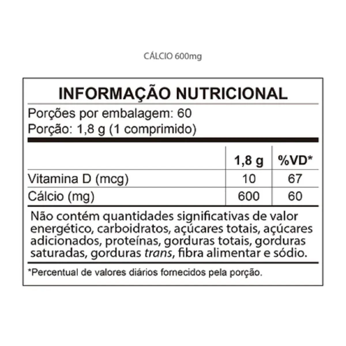 Ingredientes: Carbonato de cálcio, vitamina D3 (colecalciferol), antiumectante estearato de magnésio e estabilizante croscarmelose sódica. NÃO CONTÉM GLÚTEN NÃO CONTÉM LACTOSE Recomendação de uso: Ingerir 1 (um) comprimido ao dia. Produto indicado para o grupo populacional Adulto > 19 anos. USO ADULTOMANTENHA FORA DO ALCANCE DE CRIANÇAS.Imagens Meramente Ilustrativas. Todas as Informações Divulgadas são de Responsabilidade Exclusiva do Fabricante/fornecedor.