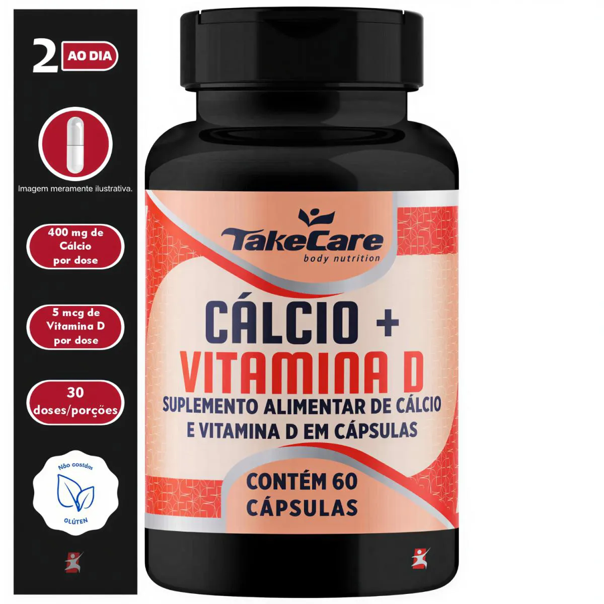- Cada frasco fornece: 30 doses/porções (1 mês); - Auxiliam na formação de ossos e dentes; - Auxiliam da absorção de cálcio e fósforo; - Auxilia no funcionamento do sistema imune; - Auxilia no funcionamento muscular; - Auxilia no metabolismo energético; - SEM GLÚTEN. SUGESTÃO DE USO Produto indicado para adultos (≥ 19 anos). Ingerir 2 (duas) cápsulas ao dia. TABELA NUTRICIONAL – COMPOSIÇÃO – RECOMENDAÇÕES Anexo nas imagens. DADOS TÉCNICOS Registro ANVISA – PRODUTO DISPENSADO DE REGISTRO CONFORME A RDC NO. 27/2010, ALTERADA PELA RDC NO. 240/2018. Marca – TAKE CARE. Conteúdo líquido por frasco – 60 cápsulas. Rendimento líquido por frasco – 30 doses/porções. Peso líquido por frasco – 30g. Peso bruto por frasco – 65g. Peso aproximado do produto + embalagem de envio – 150g. Código de barras (EAN) – 7898671434315. Dimensões do produto – altura 11cm; largura 6cm; comprimento 4,5cm. Dimensões da embalagem padrão – altura 7cm; largura 12 cm; comprimento 16cm. ITENS DO ANÚNCIO - 1 Unidade do produto: CÁLCIO + VITAMINA D 60 CÁPSULAS – TAKE CARE Total: 60 cápsulas POR FRASCO.