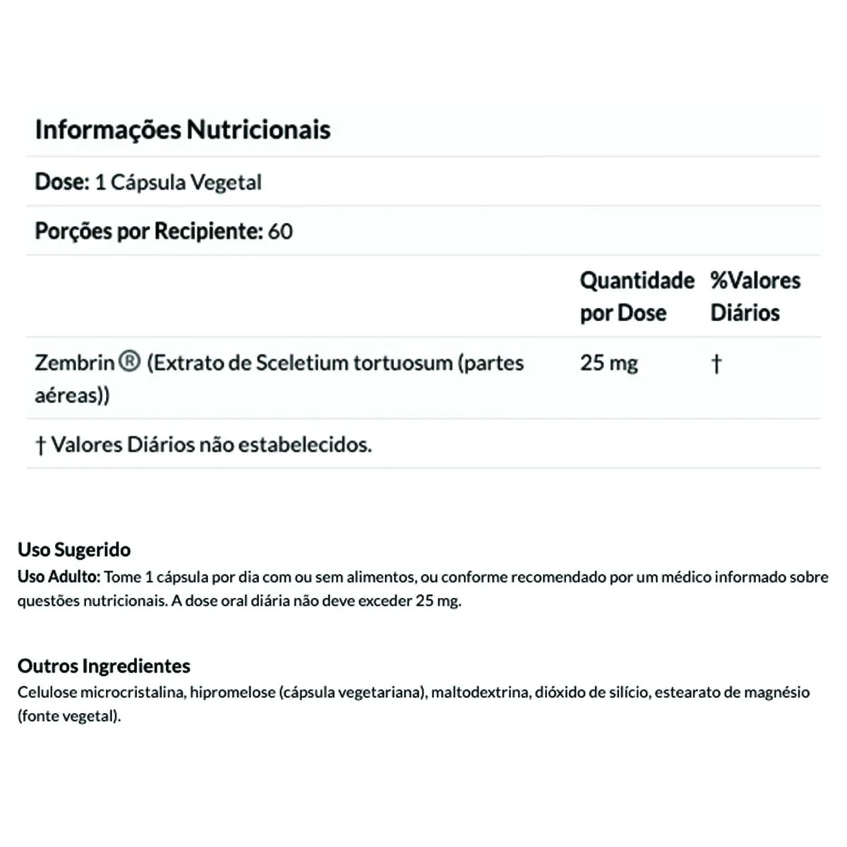 SUGESTÃO DE USO: Tomar 1 cápsula por dia com ou sem alimentos, ou conforme recomendado por um médico informado sobre questões nutricionais. A dose oral diária não deve exceder 25 mg.