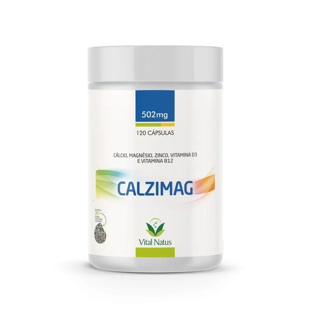 CALZIMAG - Cálcio, Zinco, Magnésio, vitamina D3, Vitamina B12, contribui com a saúde dos ossos e para hipogonadismo em homens, oligospermia, redução da imunidade celular e humoral, alopecia, alterações olfativas e oftálmicas, artrite reumatoide, diabetes, letargia mental, estresse, lesões de pele. Age como um tranquilizante natural e auxilia na manutenção da saúde. Ajuda no fortalecimento do sistema imunológico e no processo de divisão celular.