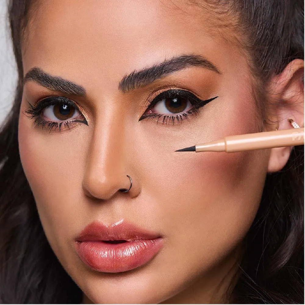 Sua ponteira fina e a embalagem com pegada de precisão facilita a criação de delineados desde os mais delicados até os mais elaborados.
