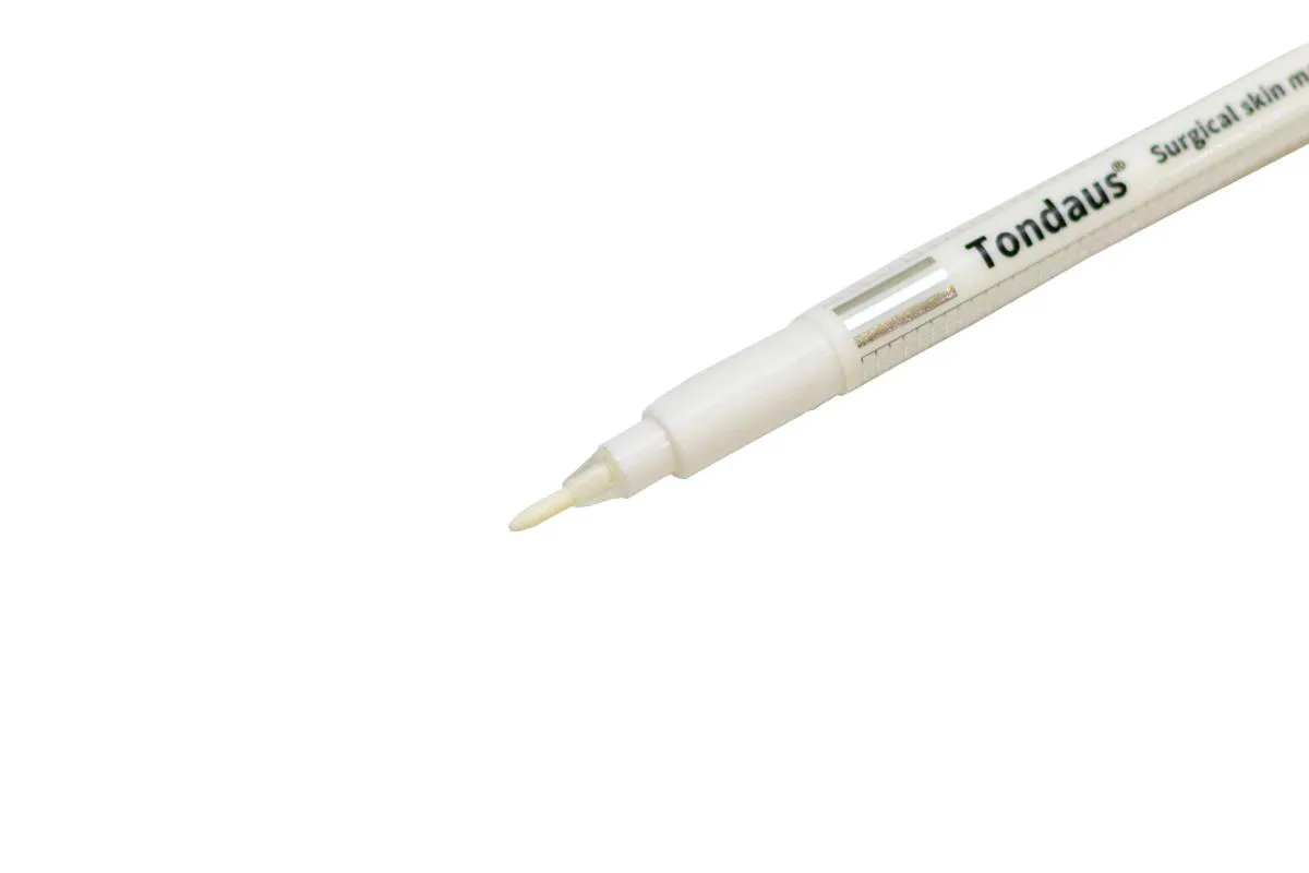 CANETA MARCADORA TONDAUS COR BRANCA PONTA 1.0MM TS05 01 UN A Caneta de Marcação Cirúrgica Tondaus é visível até 10 vezes mais do que a tinta tradicional, eliminando a necessidade de remarcar o paciente na sala de operação. Ideal para procedimentos ortopédicos, espinhais, microblanding, marcação de sobrancelhas, tatuagens, e cirurgias plásticas que requerem marcação extensiva, como elevadores de mama e abdominoplastia. Também é perfeita para lipoaspiração e outros procedimentos que utilizam preparações agressivas como CHG. Indicações: Procedimentos ortopédicos e espinhais, microblanding para marcar sobrancelhas e tatuagens, procedimentos de cirurgia plástica com marcação extensiva (ex: elevadores de mama, abdominoplastia), Lipoaspiração (tumescente). Características: