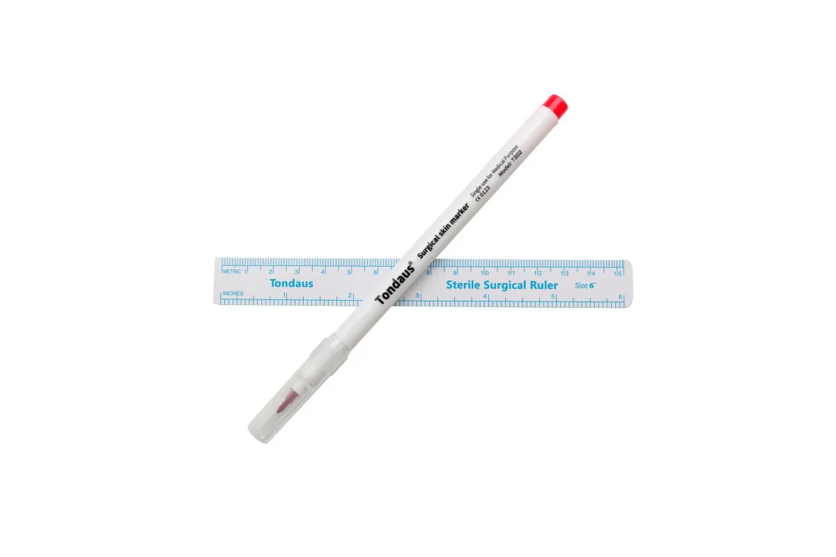 CANETA MARCADORA TONDAUS COR VERMELHA PONTA 1.0MM TS02 01UN A Caneta de Marcação Cirúrgica Tondaus é visível até 10 vezes mais do que a tinta tradicional, eliminando a necessidade de remarcar o paciente na sala de operação. Ideal para procedimentos ortopédicos, espinhais, microblanding, marcação de sobrancelhas, tatuagens, e cirurgias plásticas que requerem marcação extensiva, como elevadores de mama e abdominoplastia. Também é perfeita para lipoaspiração e outros procedimentos que utilizam preparações agressivas como CHG. Indicações: Procedimentos ortopédicos e espinhais, microblanding para marcar sobrancelhas e tatuagens, procedimentos de cirurgia plástica com marcação extensiva (ex: elevadores de mama, abdominoplastia), Lipoaspiração (tumescente). Características:
