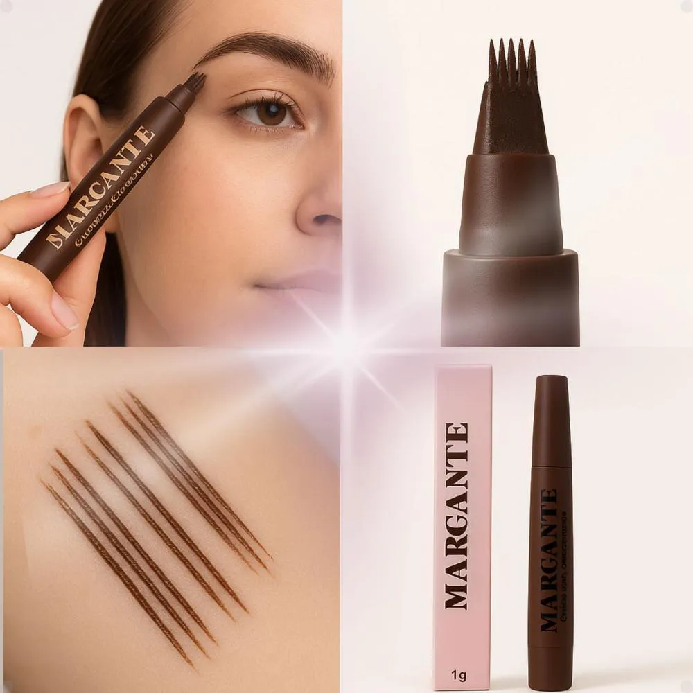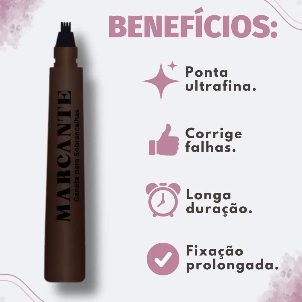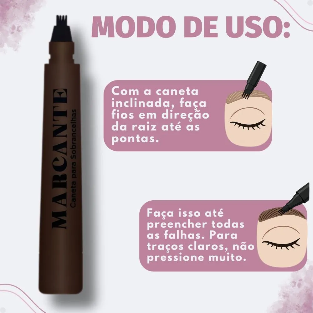 - Aplique a caneta nas sobrancelhas com traços leves e curtos, seguindo o formato natural das sobrancelhas.