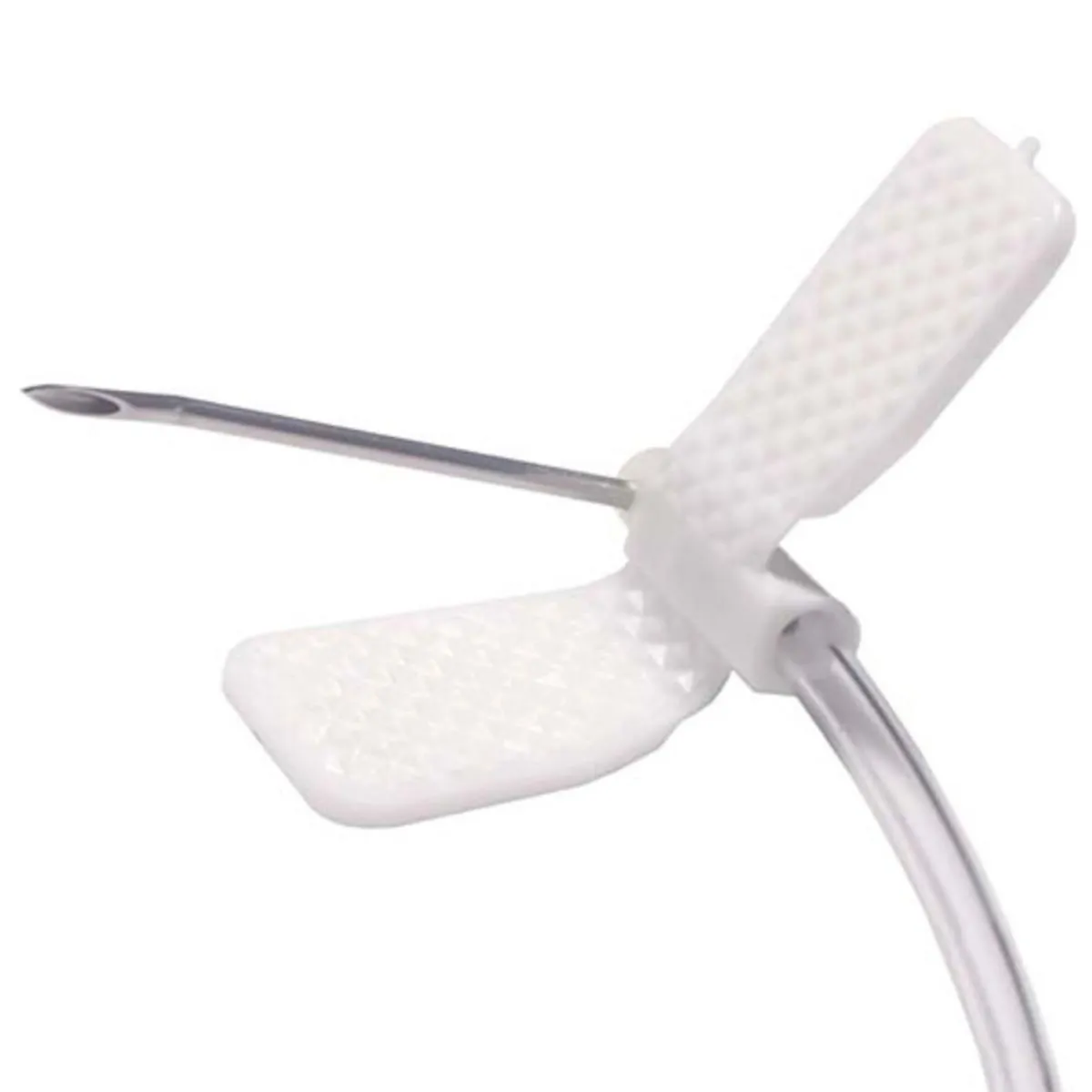 - Design curvo para punção precisa e segura.
