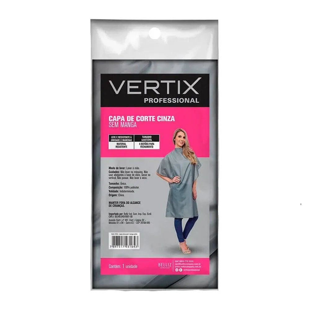 Capa Cinza Sem Manga Vertix. Capa de Corte Sem Manga – perfeita para profissionais que buscam conforto e praticidade durante o atendimento. Confeccionada com tecido leve e resistente, garante liberdade de movimento e facilita a execução dos cortes. Seu design sem mangas proporciona ventilação ideal, evitando o calor excessivo. Ideal para salões, barbearias e uso pessoal. Durabilidade e estilo para o seu dia a dia! Contém: 1 capa de corte sem manga. Material: Tecido de alta qualidade, fácil de limpar e manter. Garanta já sua capa e eleve o padrão do seu trabalho!
